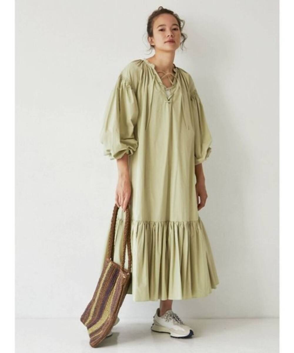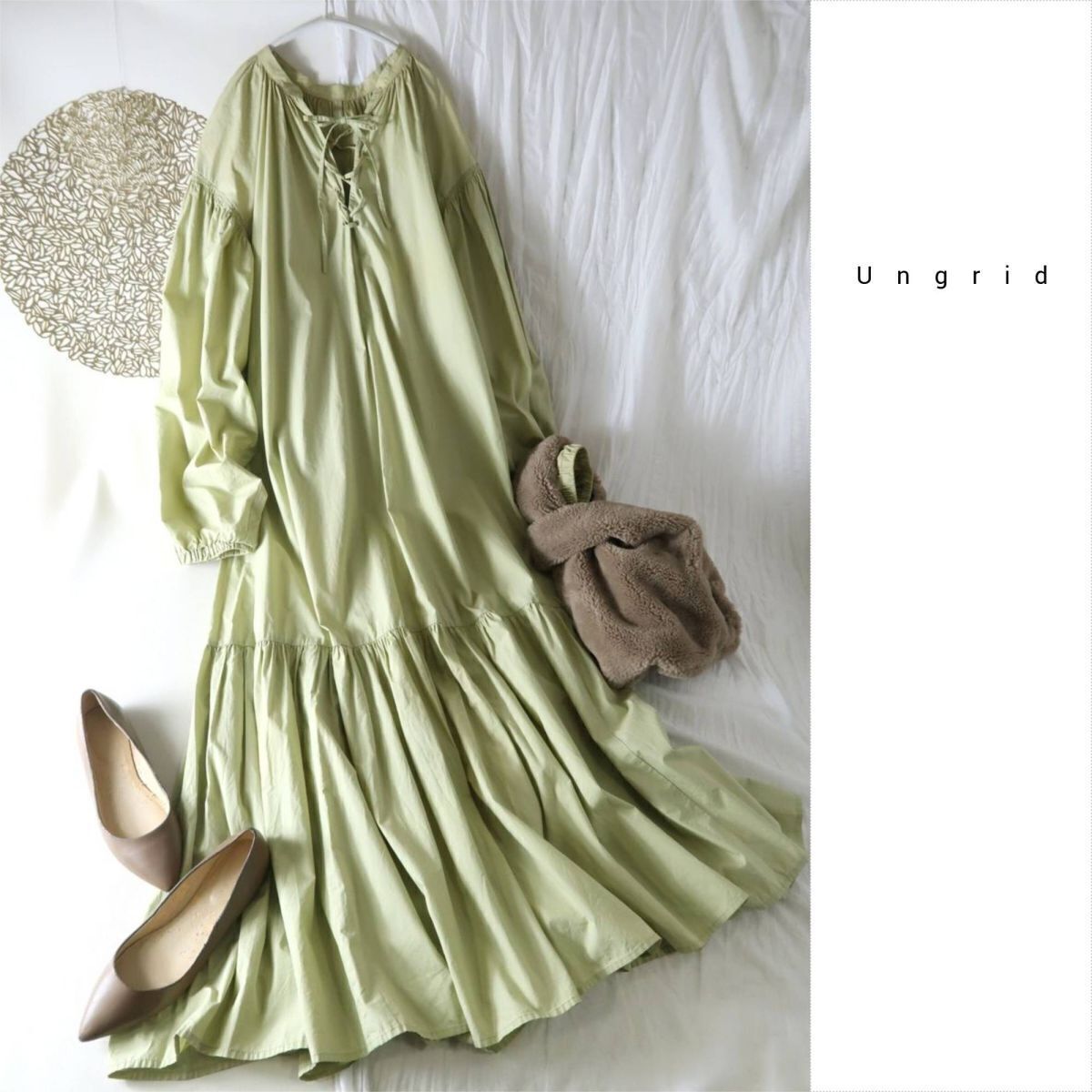 1.3万☆2022年☆アングリッド Ungrid☆洗える レースアップティアードマキシワンピース Fサイズ☆A-O 5450