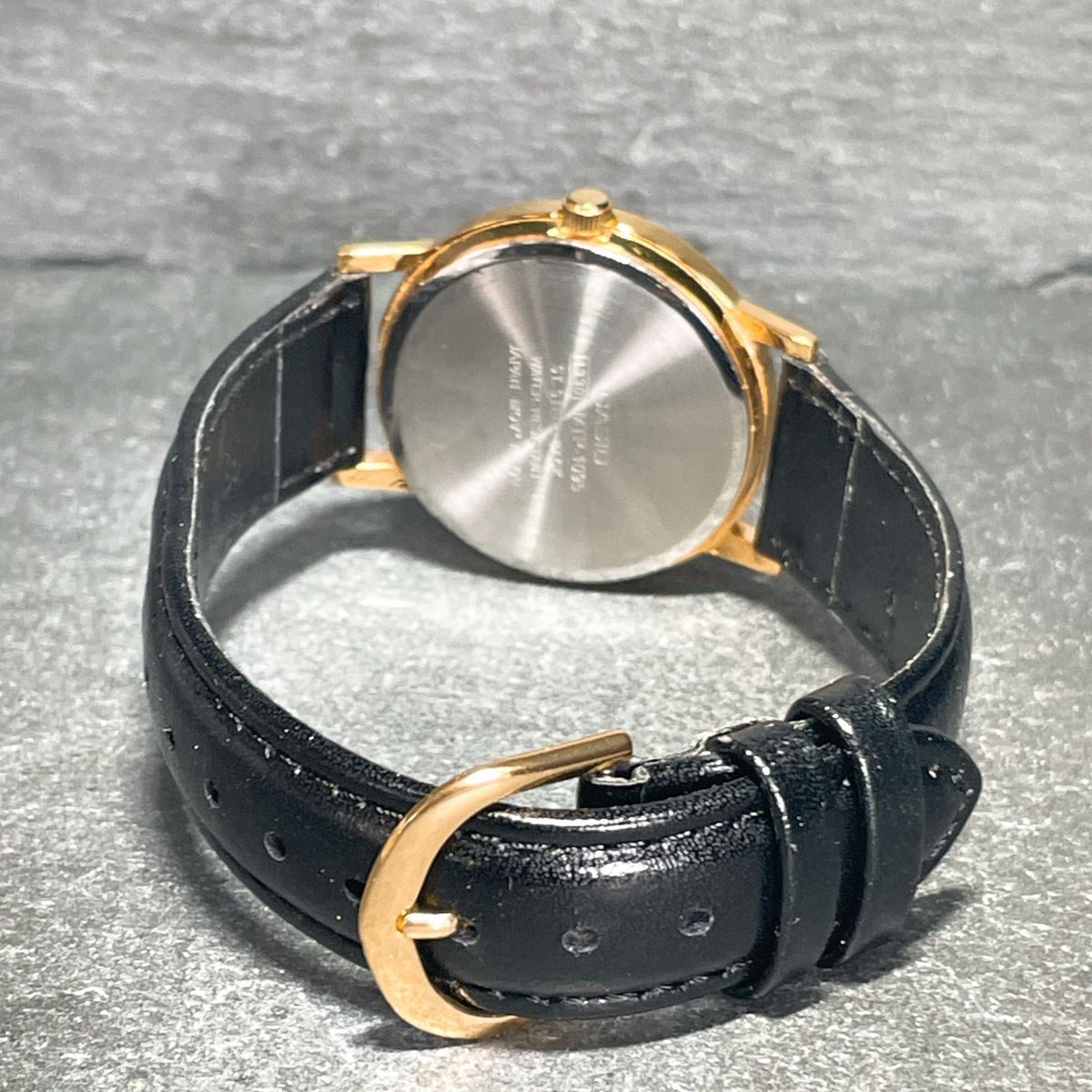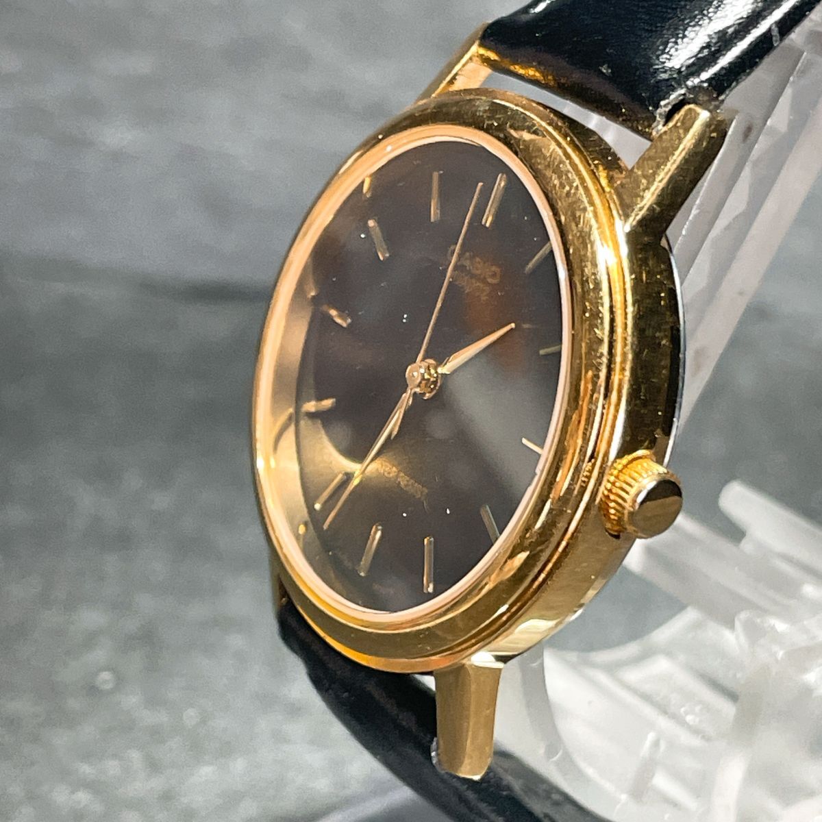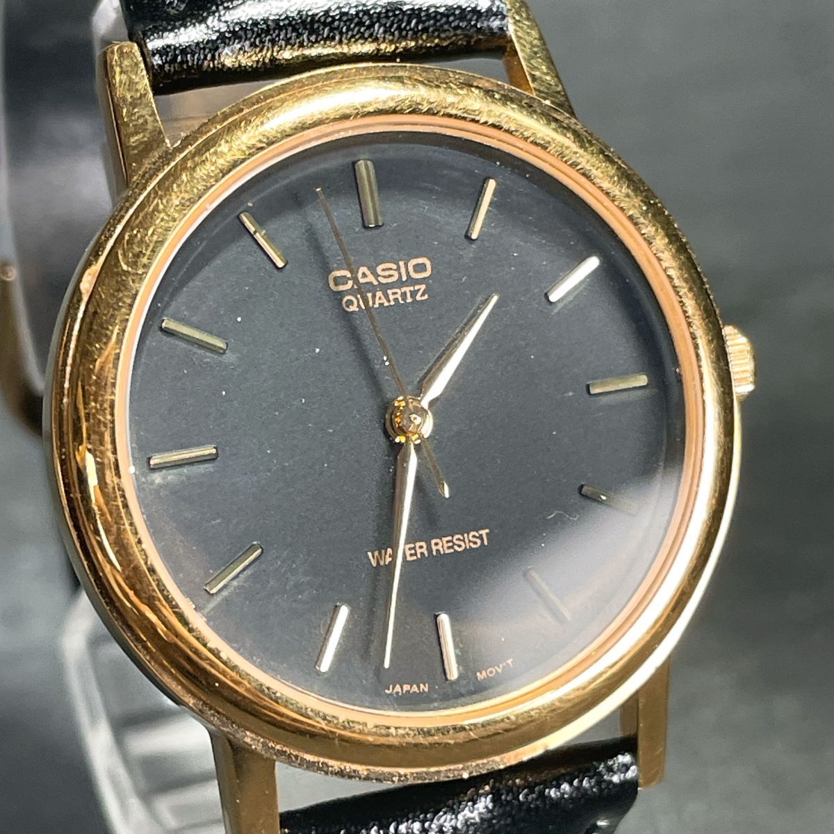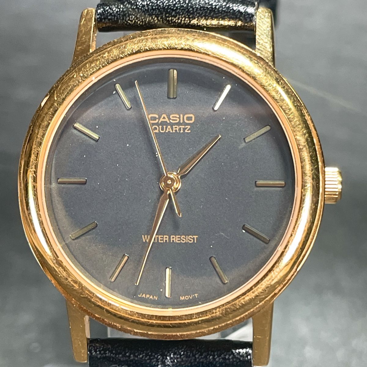 美品 CASIO カシオ MTP-1095 腕時計 アナログ クオーツ 3針 ブラック文字盤 レザーバンド ゴールド ラウンド 新品電池交換済み 動作確認済