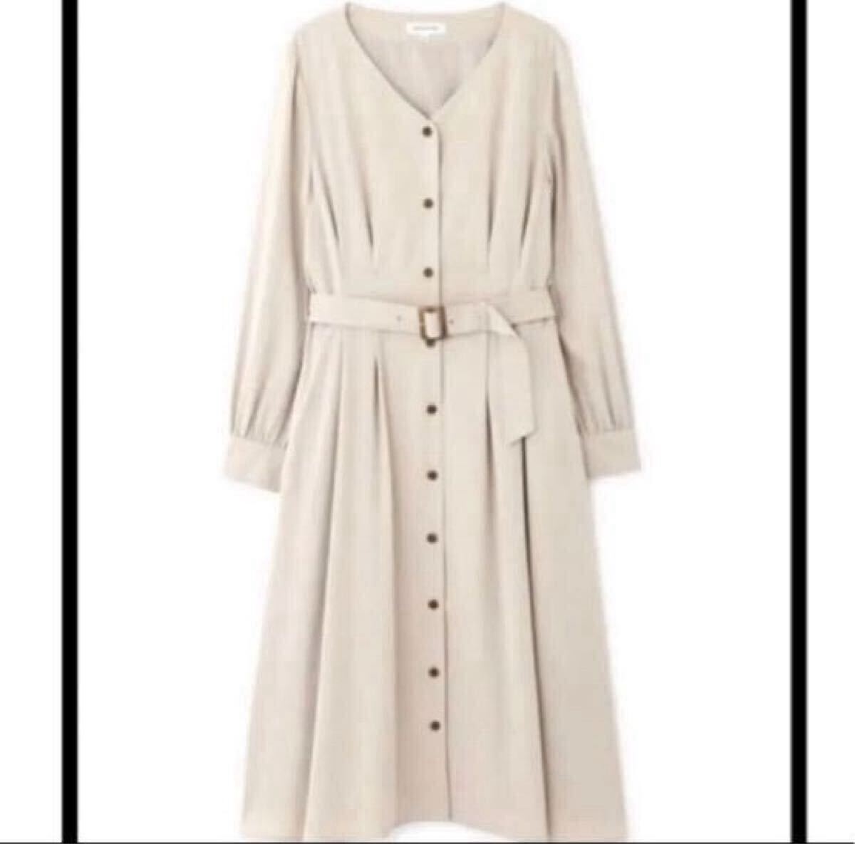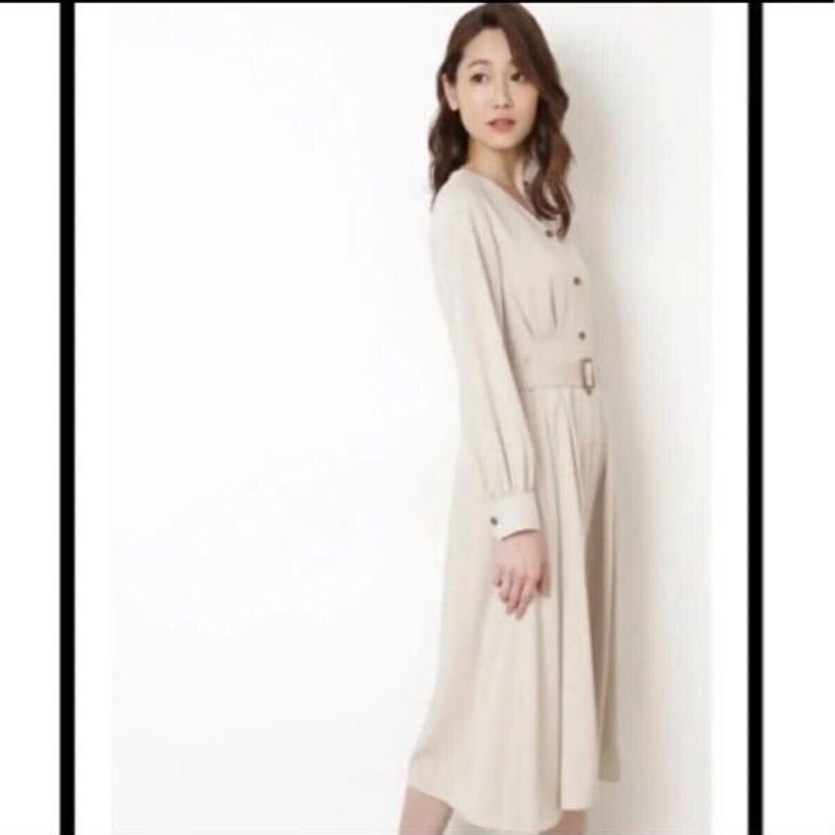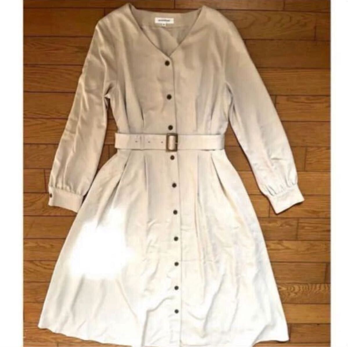 光沢感ある、可愛さと今時っぽいベージュカラーワンピースです。