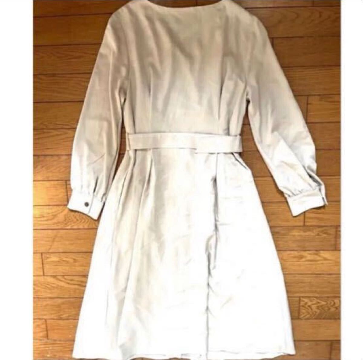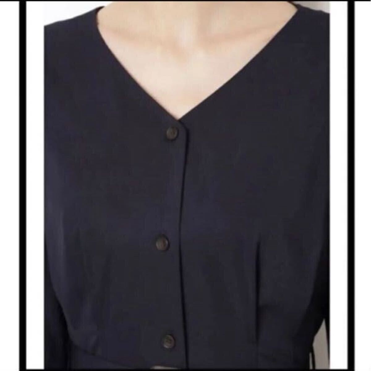 ウエスト部分にあしらったタックデザインで女性らしいメリハリシルエットに仕上げたワンピース。襟はすっきりVネックでデコルテラインを綺麗に見せてくれる。フロントボタンでコートインにも程よいアクセントになってくれる。