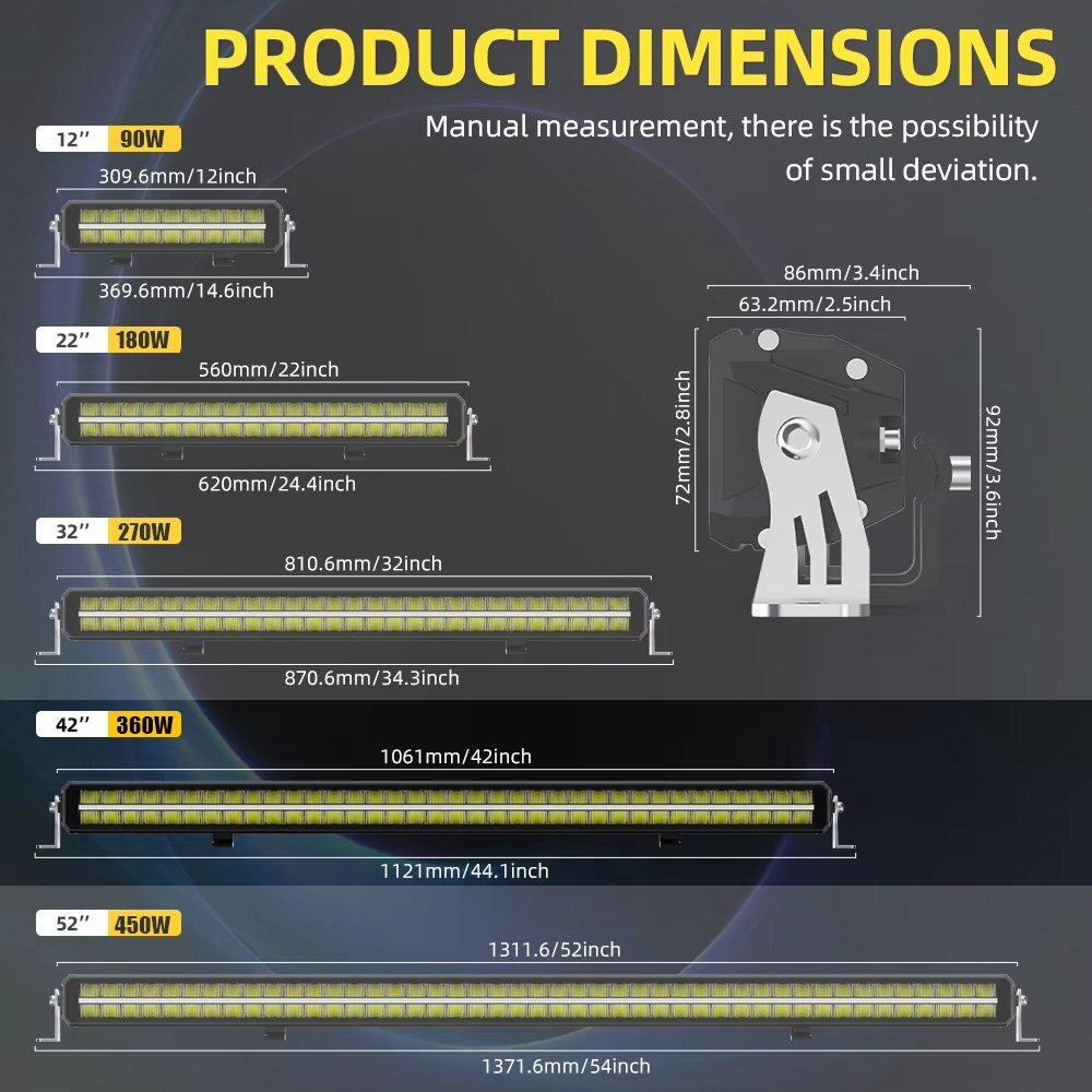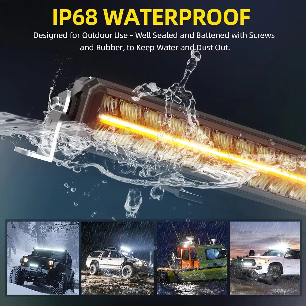 【高性能】:EマークEU認証品、IP68防護レベル,有効的な防水素材を採用し、どんな悪天候でもご心配なく対応できる。防塵.耐衝撃 アルミ基板なので、高温にも耐えられる非常に優れた耐熱性・放熱性を実現。ライトの角度調整が可能で、より便利に使えます。-オフロード車のライト、ワークライトバーに最適。