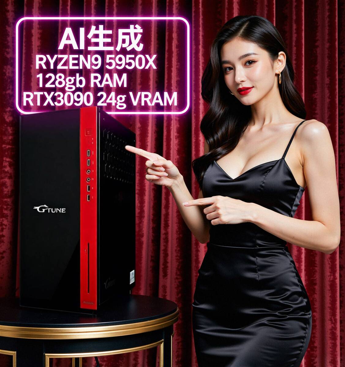 Mouse G-Tune AI生成 ゲーミングPC|XP-AX570|Ryzen 9 5950X|128GB RAM|RTX 3090|新品SSD 512GB|Win11 Pro|Wan2.2