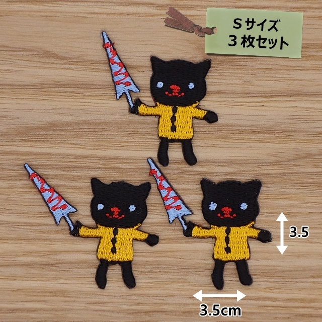 アイロンワッペン (黒ねこ)(Sサイズ)3個セット