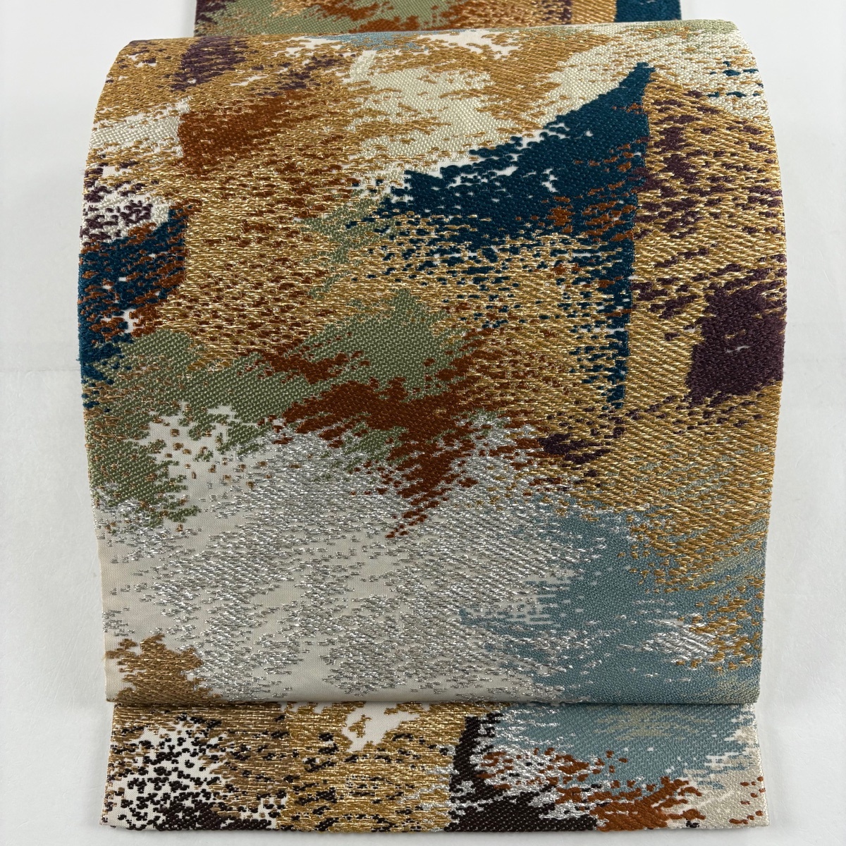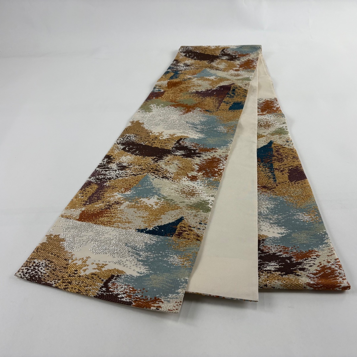| 袋帯 秀品 幾何学模様 箔 金銀糸 クリーム 六通 正絹 【中古】 |