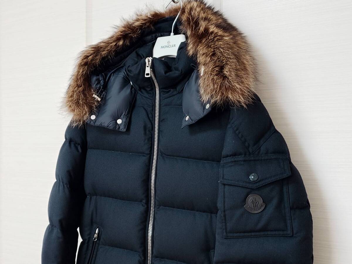 ★超美品 国内正規品 モンクレール ALLEMAND GIUBBOTTO フーディー ファー付ダウンジャケット 濃紺 サイズ2 高級クリーニング済★