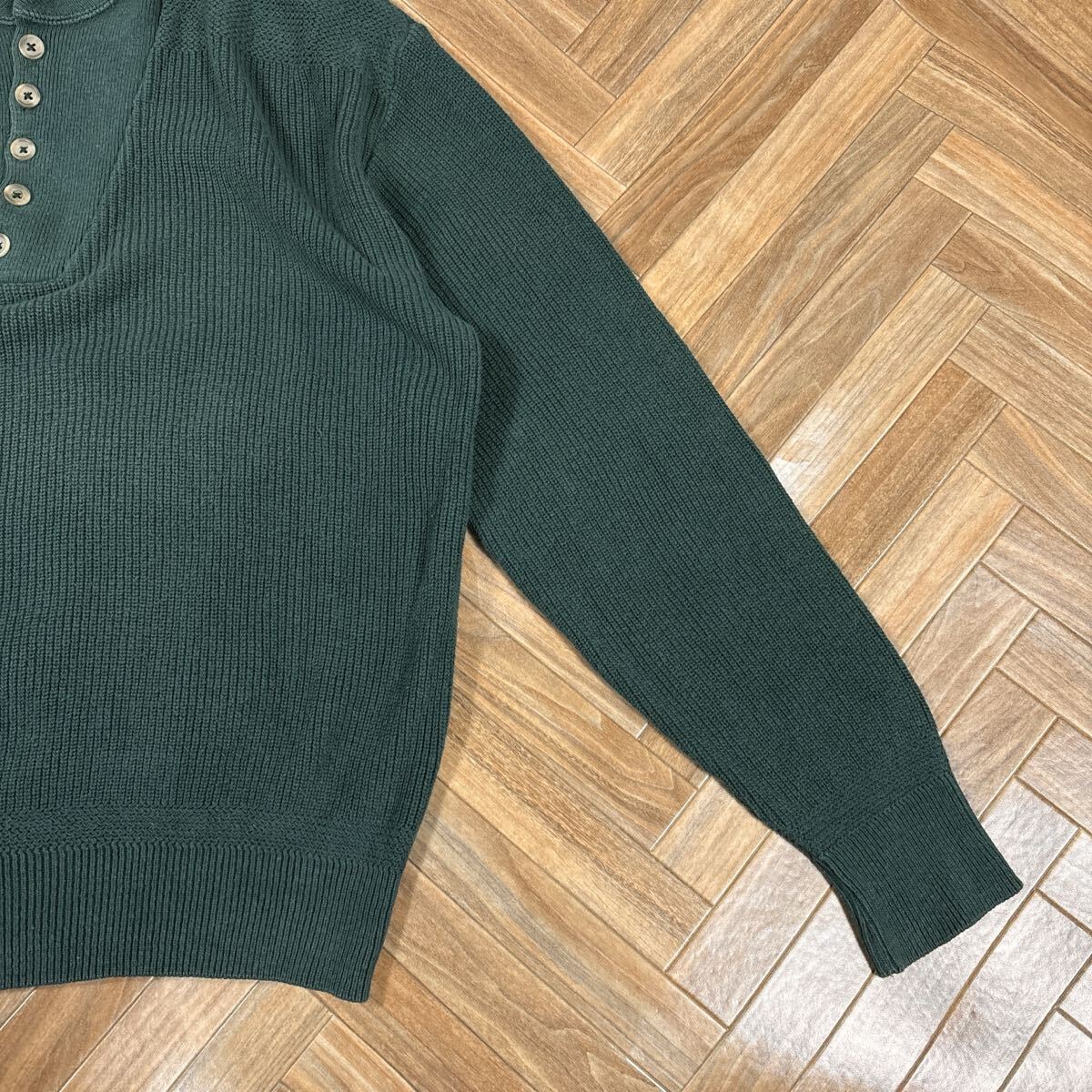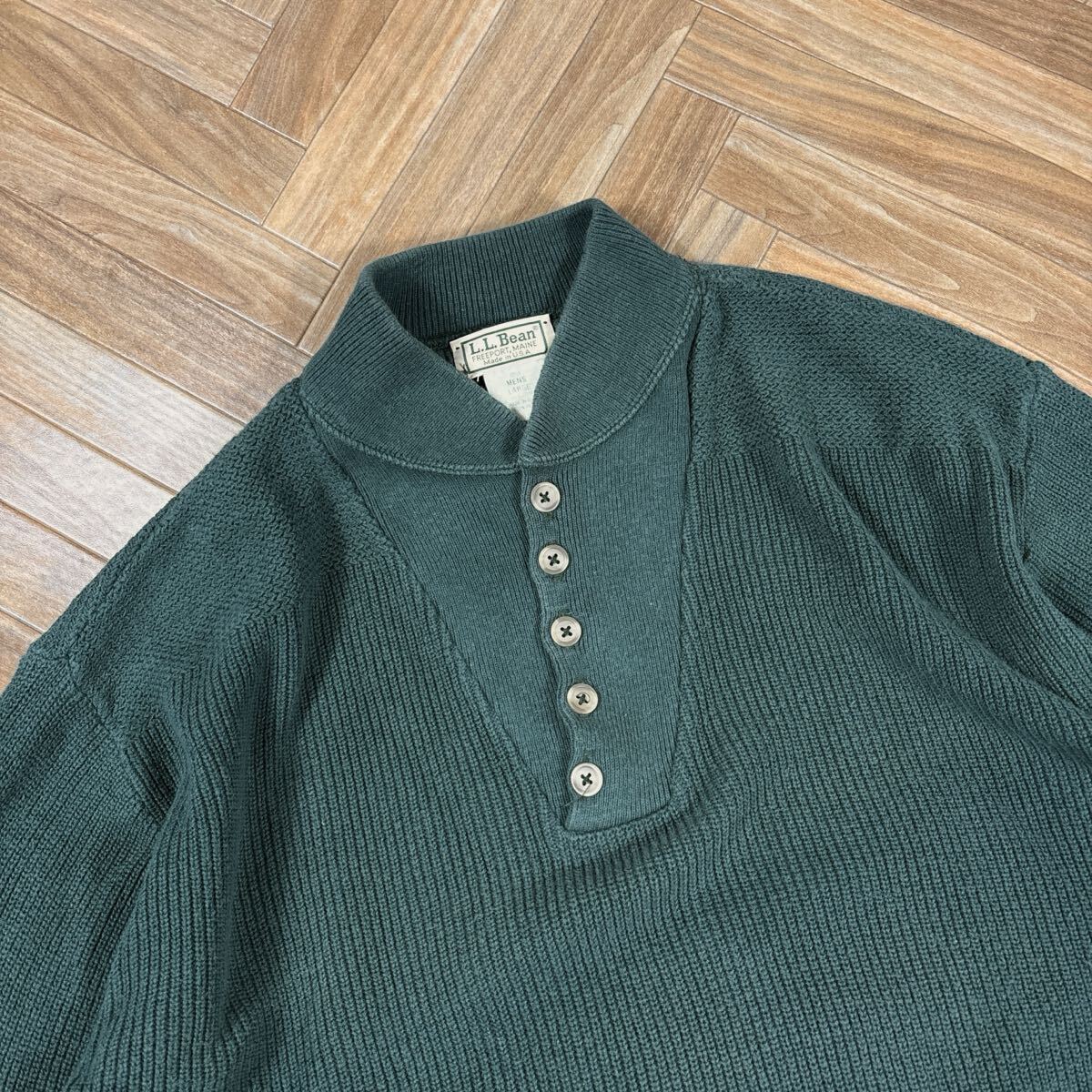 usa製 80s 90s エルエルビーン コットンニット コマンドセーター ヘンリーネック グリーン llbean アメリカ製 80年代 90年代 ハーフボタン