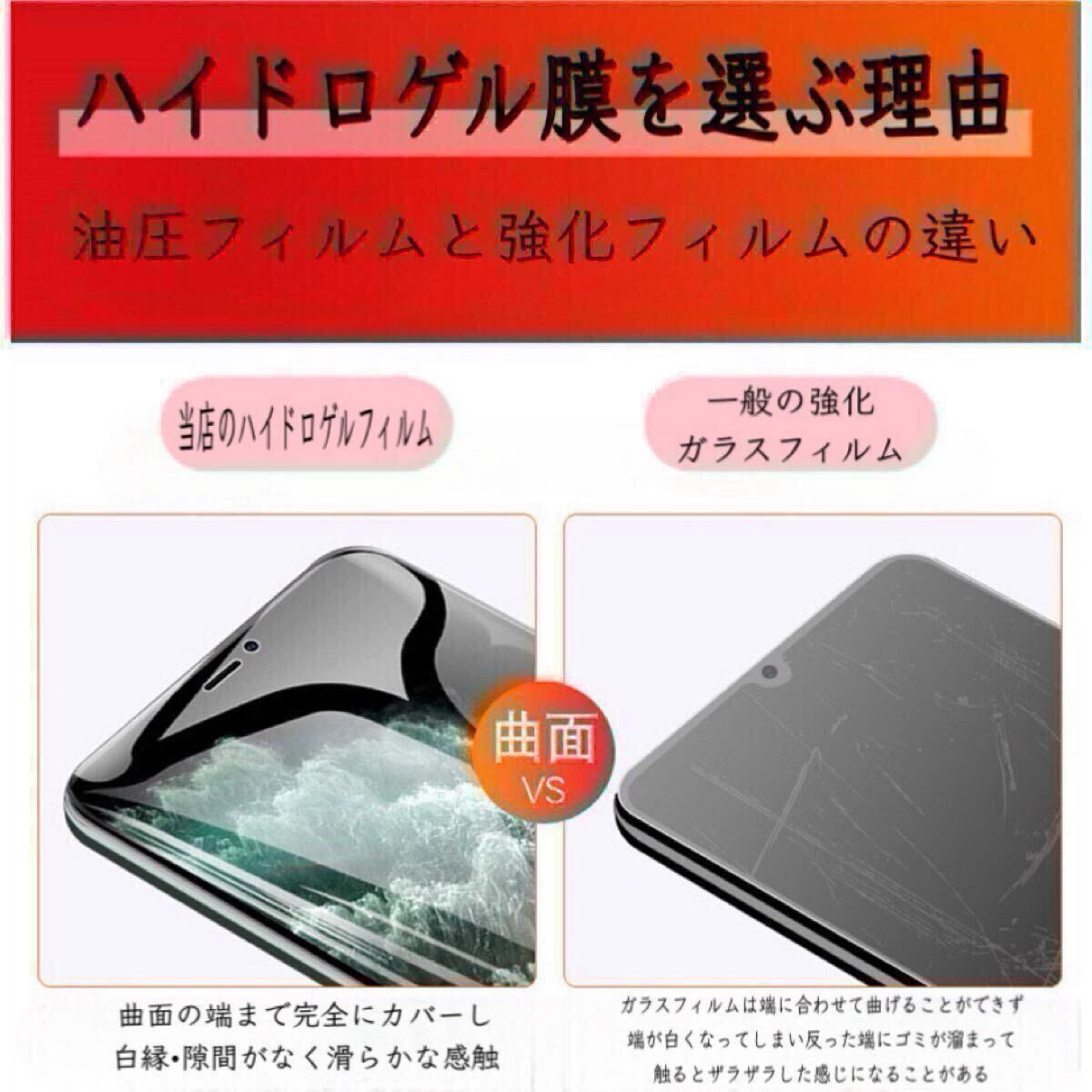 ハイドロゲル膜フィルムは、優れた透明度と耐久性を誇る保護フィルムです。iPhoneの画面を守るための必需品でありながら、ハイドロゲル膜フィルムは指紋や汚れを強力に防ぎます。指で滑らせるだけで簡単に貼り付けられ、気泡が残らない特徴があります。また、フィルムが傷ついた場合でも自己修復機能により傷を修復してくれるので、安心してご利用いただけます。ハイドロゲル膜フィルムは、強化ガラスフィルムと比較しても落下時に画面を守る柔軟性に優れています。そのため万が一の事故にも画面を守ってくれます。カメラフィルムは360度完全保護でカメラレンズをキズや汚れから守ります。
