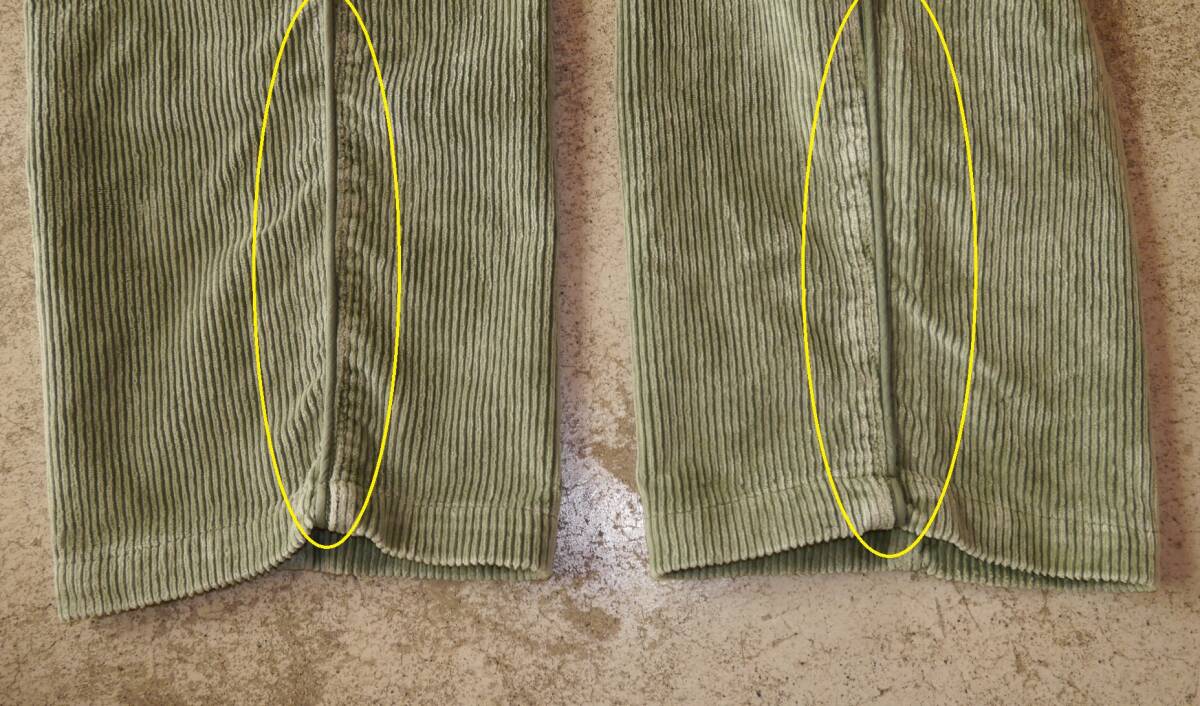 コットン80% ポリエステル20%素材のコーデュロイ生地が使用されて、両サイドに、