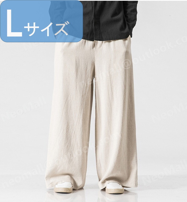 お買い得☆メンズ ワイドパンツ ベージュ L カジュアル ロングパンツ スウェット 無地 ポケット付 オールシーズン【064】