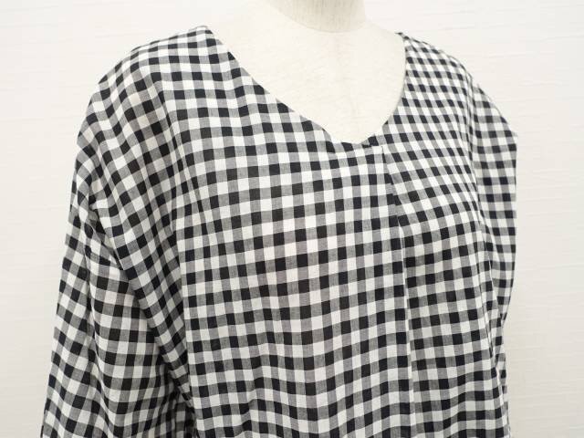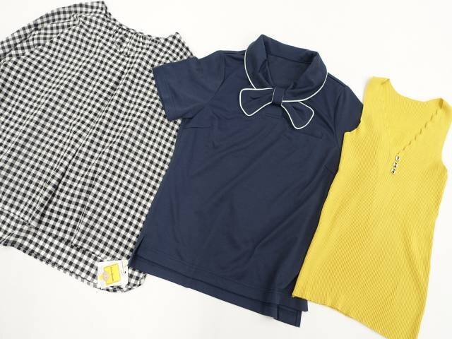 長袖プルオーバーブラウス+半袖カットソー+ノースリーブニットカットソー M相当 ホワイト×ブラック チェック柄/ネイビー/マスタード