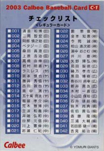 ★中古★トレカ★03カルビープロ野球チップスカード 第1弾★チェックリスト【#C01 02シリーズ優勝決定シーン巨人河原】