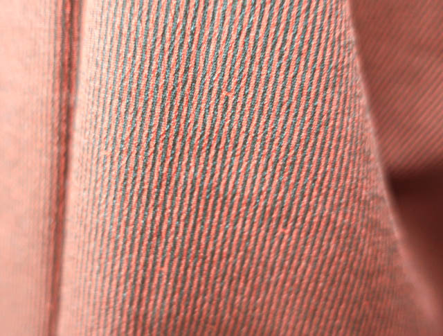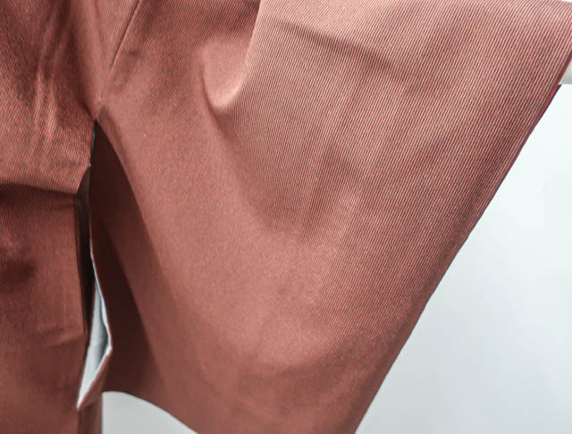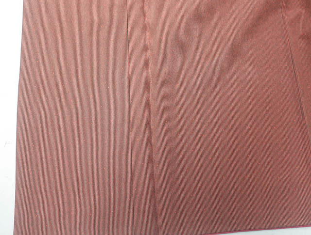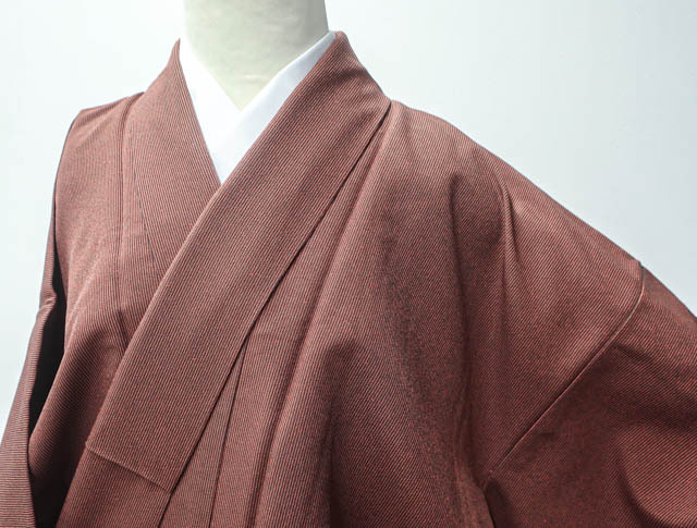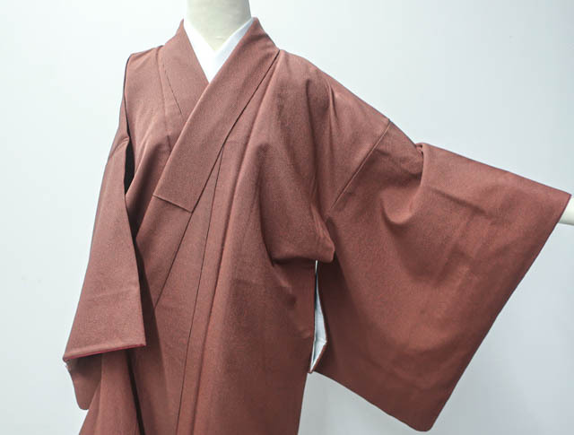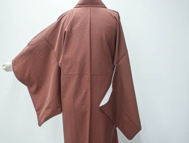 リサイクル商品のため、上前身頃に薄汚れ、上前衽にシミがございますがご着用いただけると存じます。 地色は、墨色×赤色です。 1枚目の画像が近いお色かと思われます。 素材は化繊です。 |