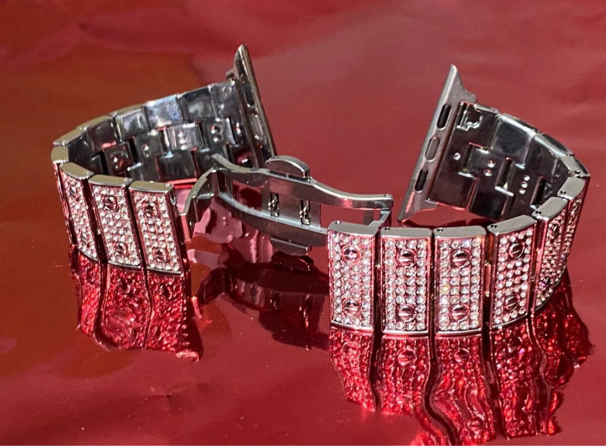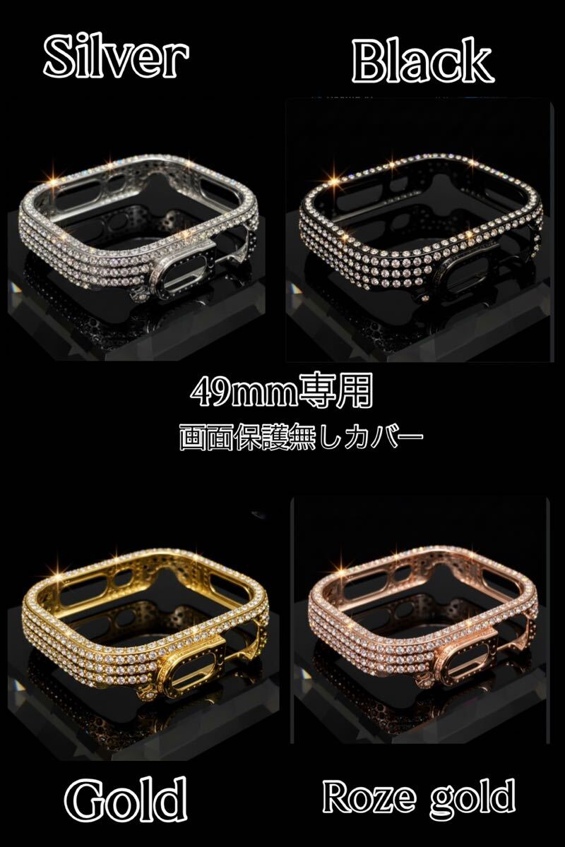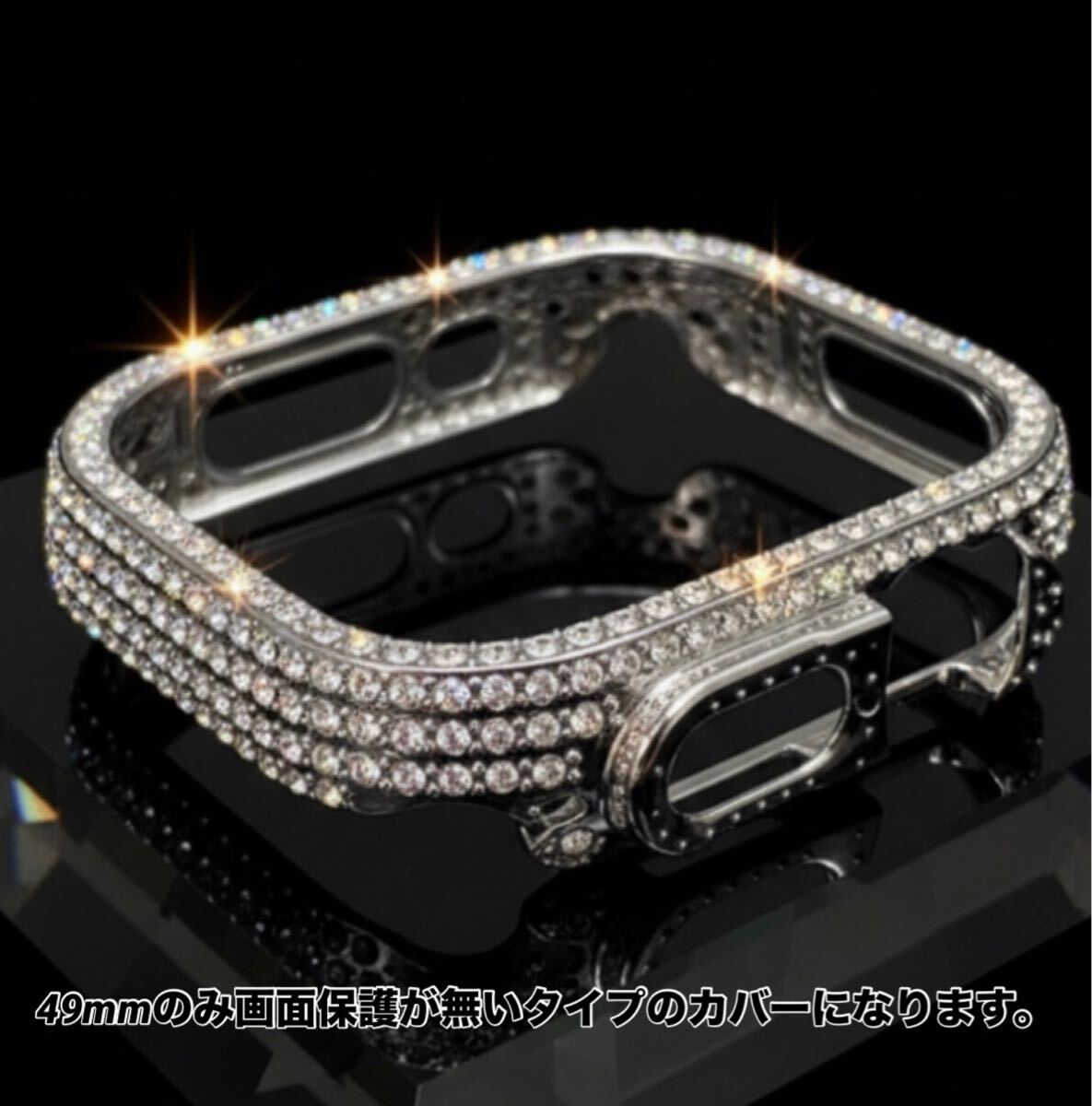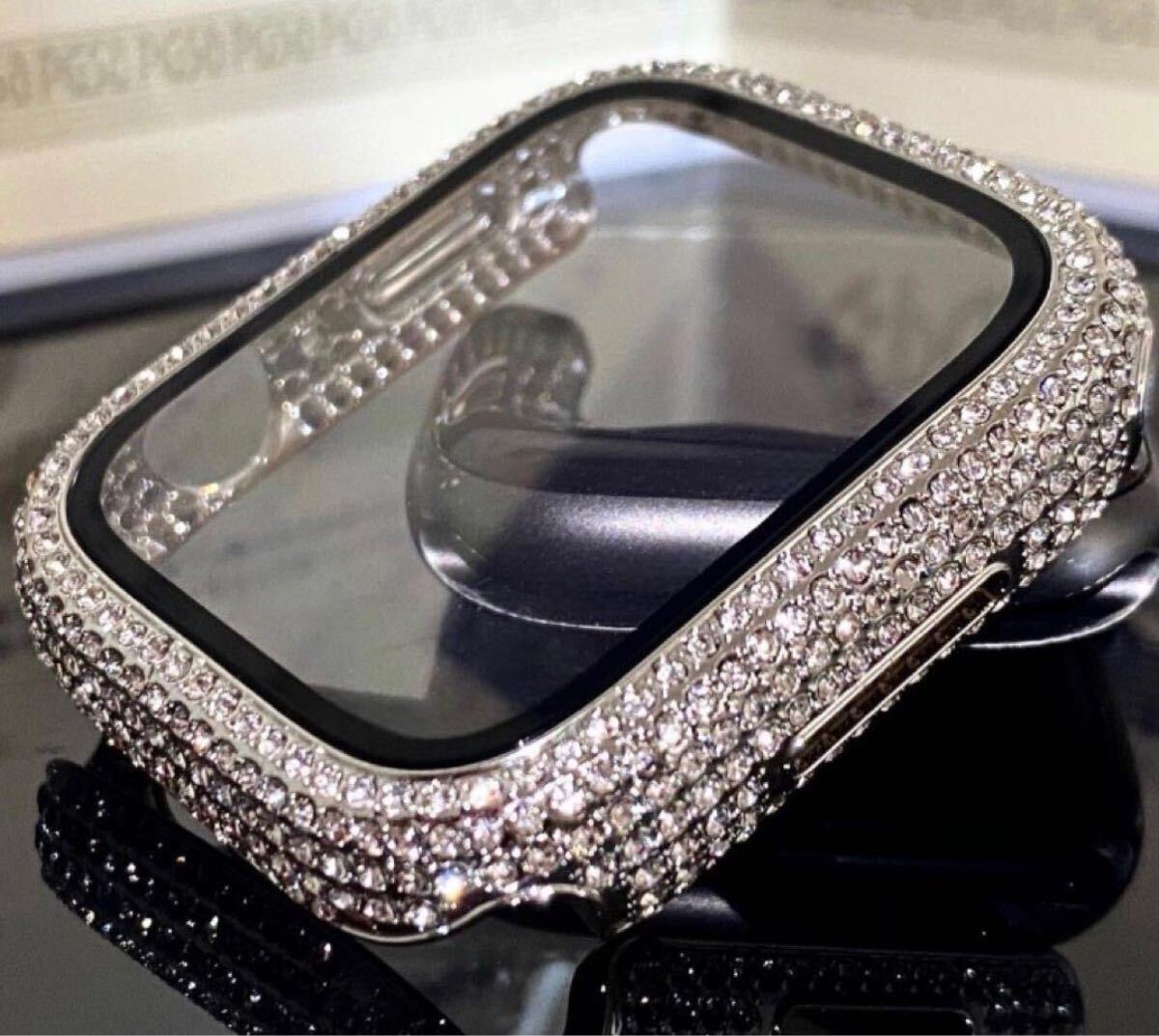 Box入り Apple Watch用 カバー ケース アップルウォッチ キラキラ ベルト バンド 調整器付 38 40 41 42 44 45 46 49 シルバー-