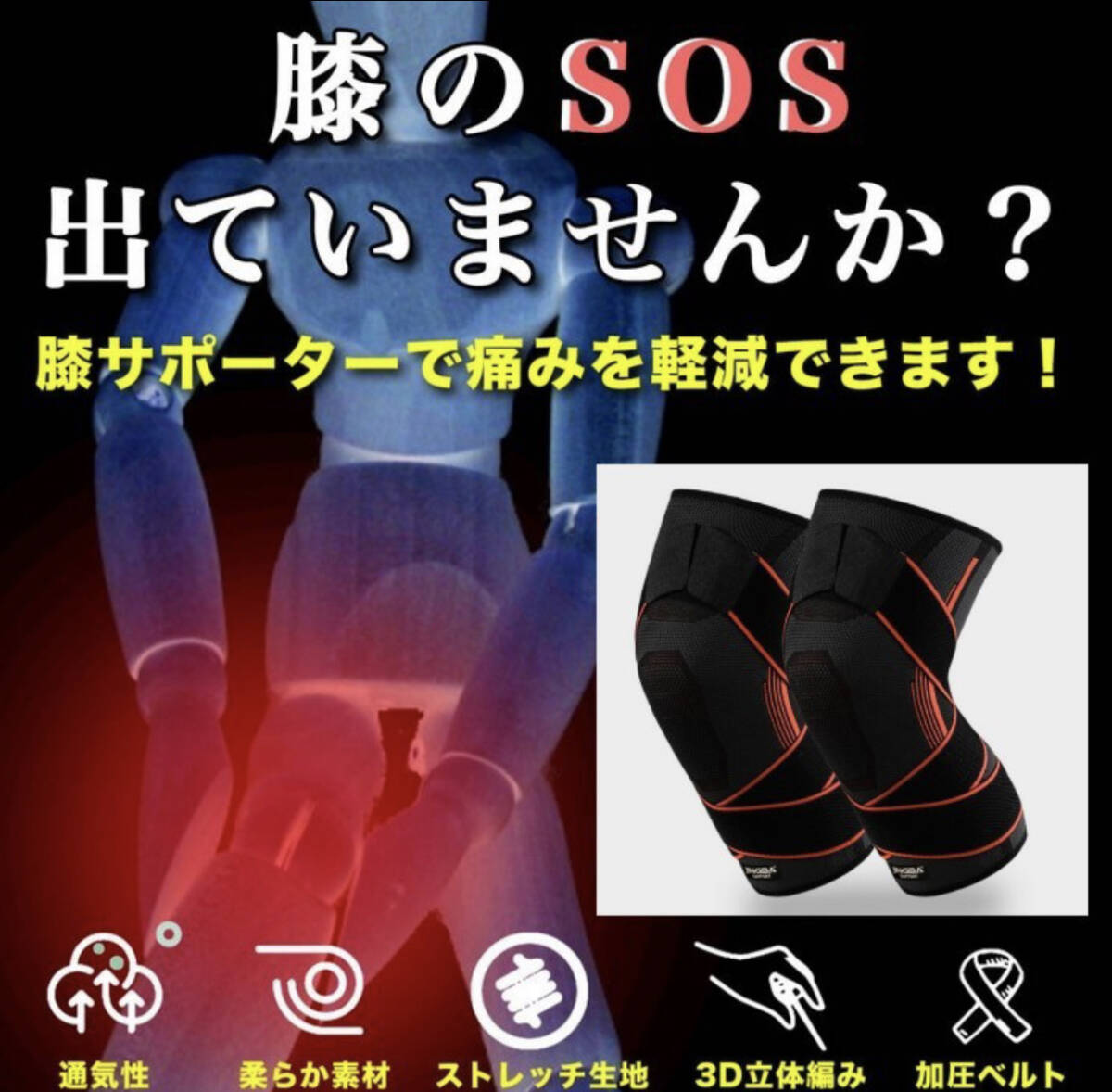 膝にお悩みがある方!負担軽減サポーターです。