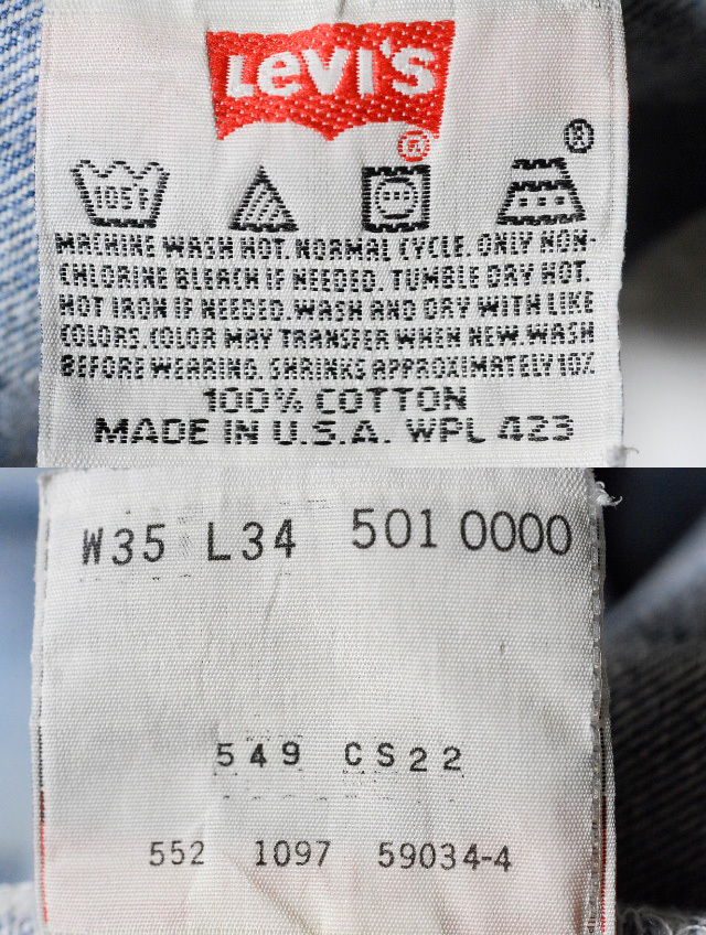 廃盤W35米国1997年10月製ヴィンテージ リーバイス501XX コーンミルズ社製14ozデニム ボタン裏552 サンアンジェロ製 股下80cm