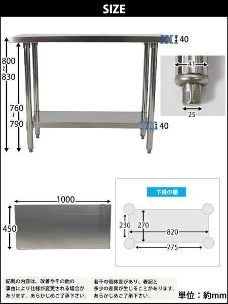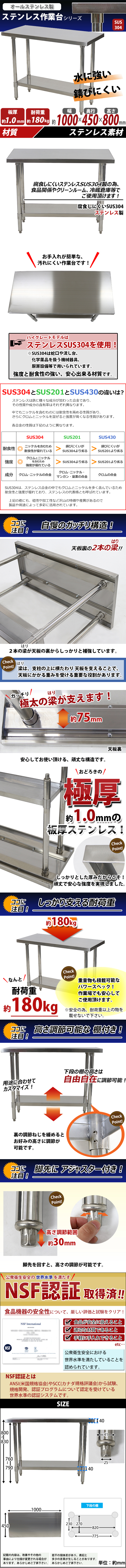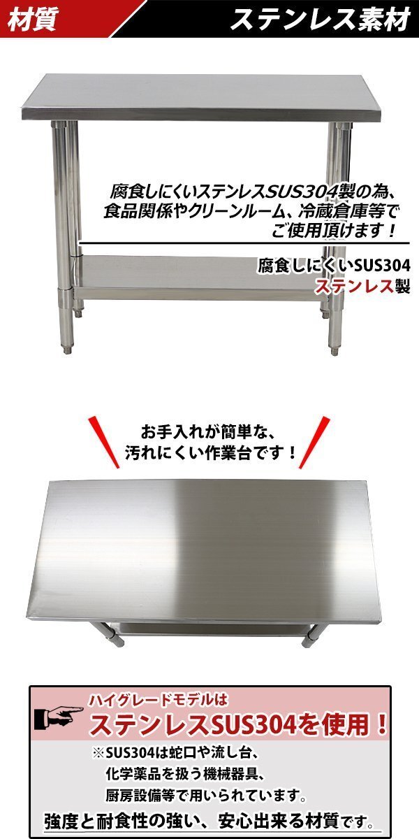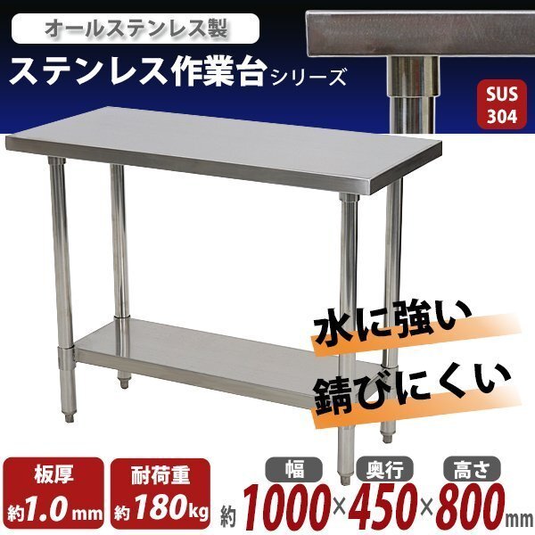 | 商品名 | 送料無料 オールステンレス作業台 2段 耐荷重約180kg 約幅1000×奥行450×高さ800mm SUS304 ハイグレードモデル ステンレステーブル ワークテーブル ステンレス台 業務用 調理台 キッチンテーブル 調理 棚付き 作業 机 ステンレス製 二段 キッチン 厨房 wtst4501000 |