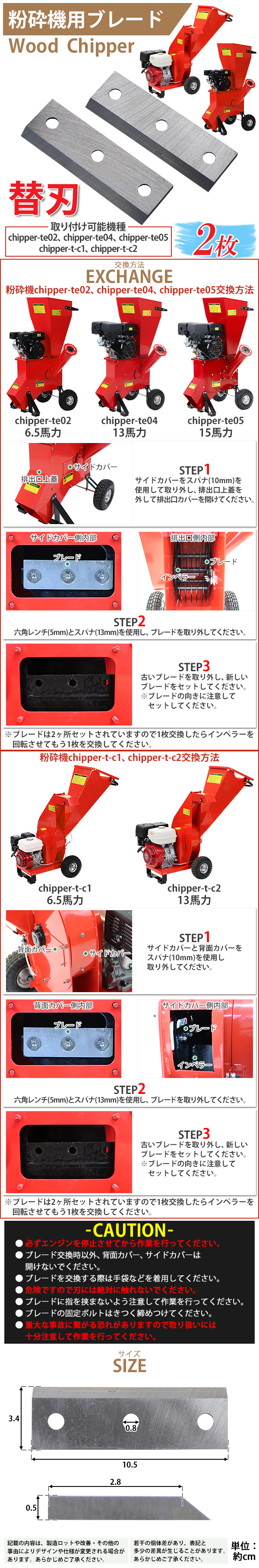 | 商品名 | 送料無料 粉砕機用 ウッドチッパー用 替刃 2枚セット 6.5馬力 13馬力 15馬力 エンジン式 ガーデンシュレッダー ガーデンチッパー チッパーシュレッダー チッパー 粉砕器 chippertetcblad2p |