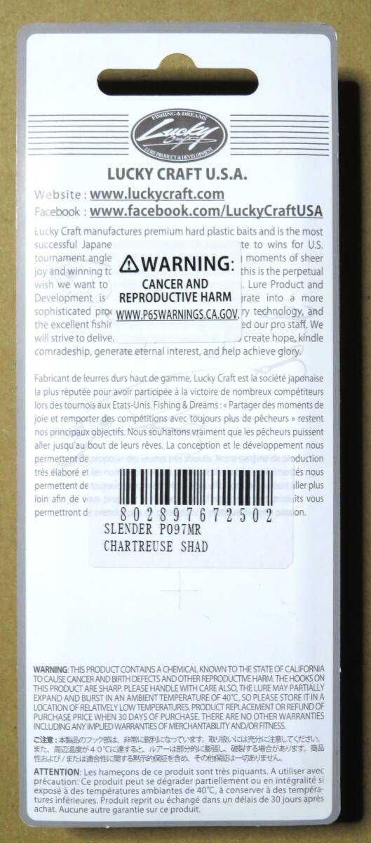 ラッキークラフト スレンダーポインター97MR チャートリュースシャッド 未開封新品 LUCKY CRAFT SLENDER POINTER ジャークベイト