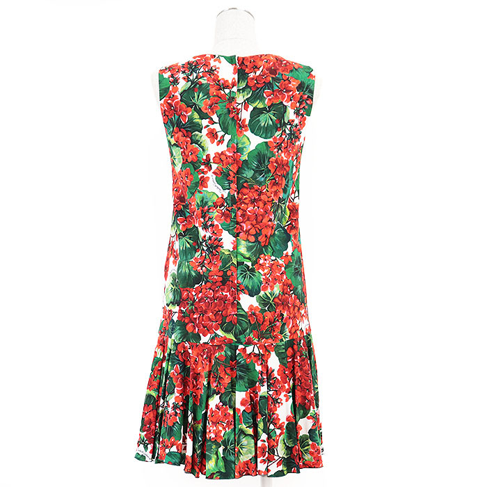 シリーズDOLCE&GABBANA ドルチェアンドガッバーナ ノースリーブワンピース フラワー ロゴ ストレッチ タグ付属 レディース 36 白 赤 緑
