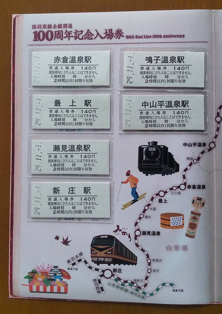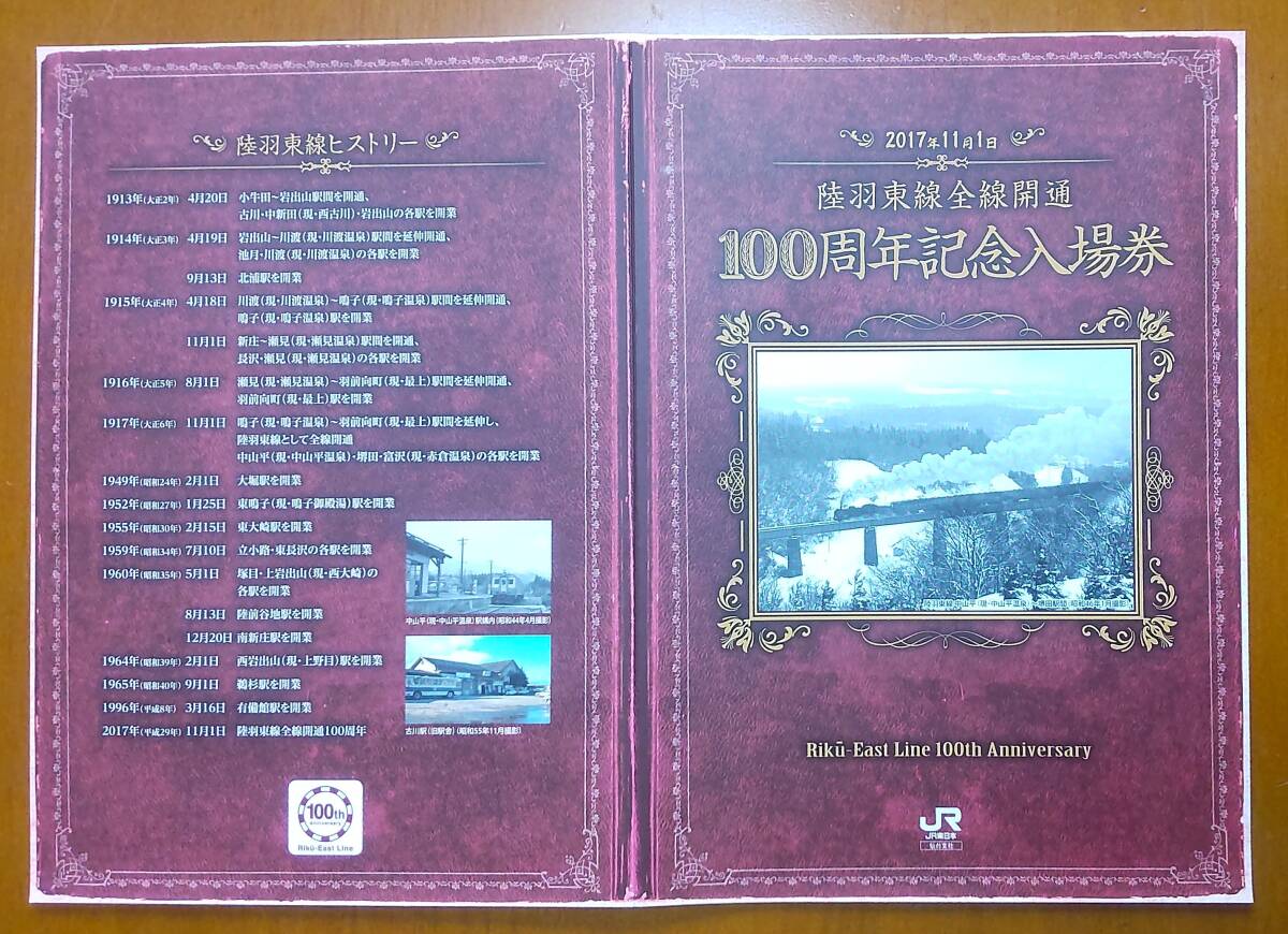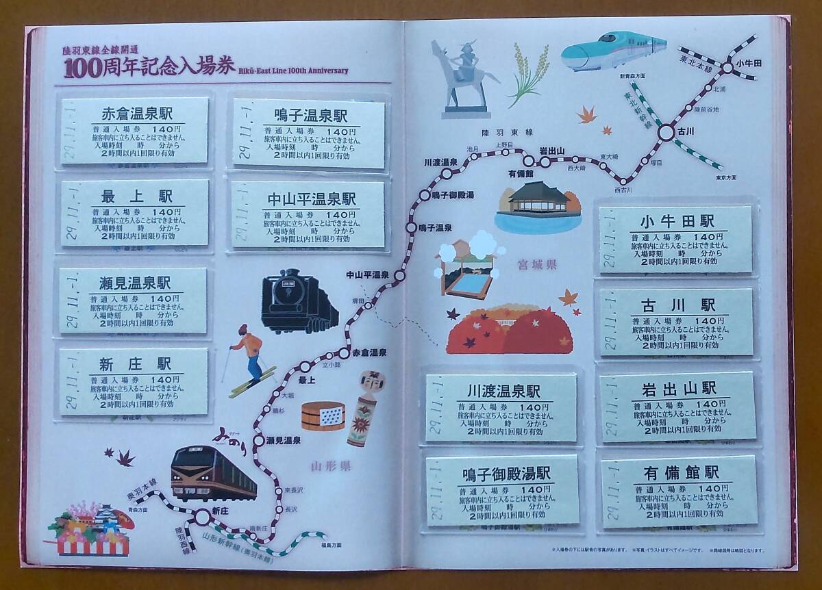 平成29年11月1日 陸羽東線全線開通100周年記念入場券