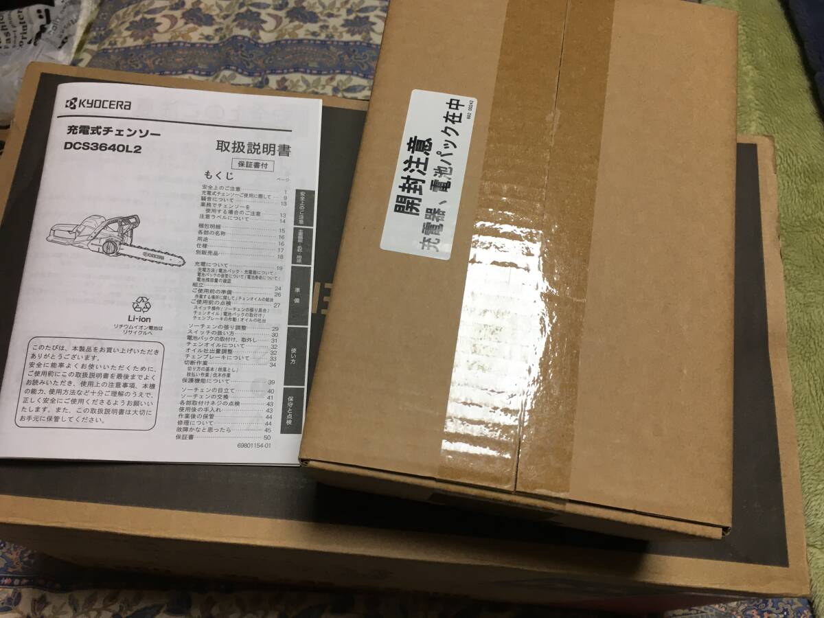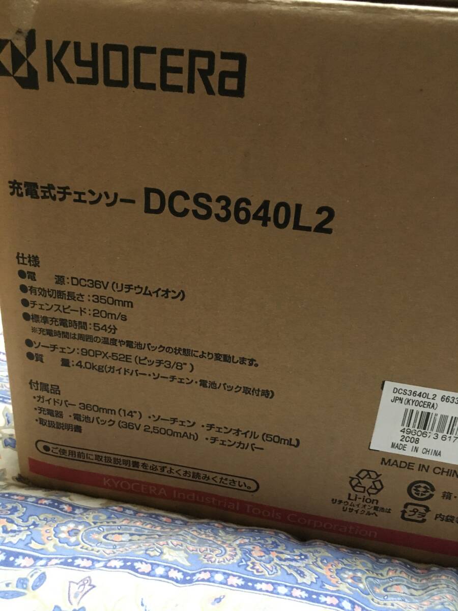 京セラのDCS3640L2 充電式チェーンソーです