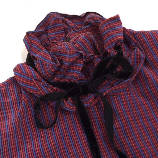 | 送料360円 ジバンシィ サイズ 6 チェック柄 長袖 ボウタイ チュニック 肩パッドあり レディース 日本製 同梱NG |