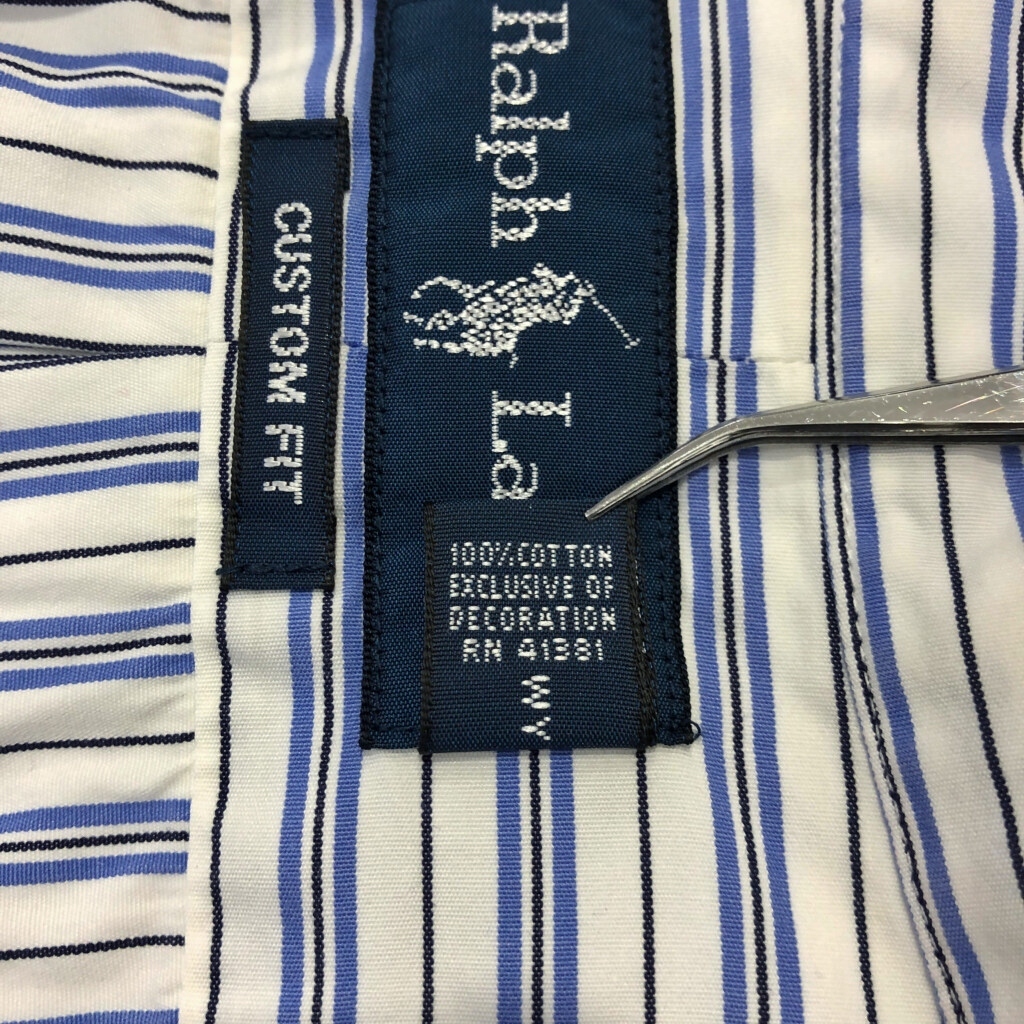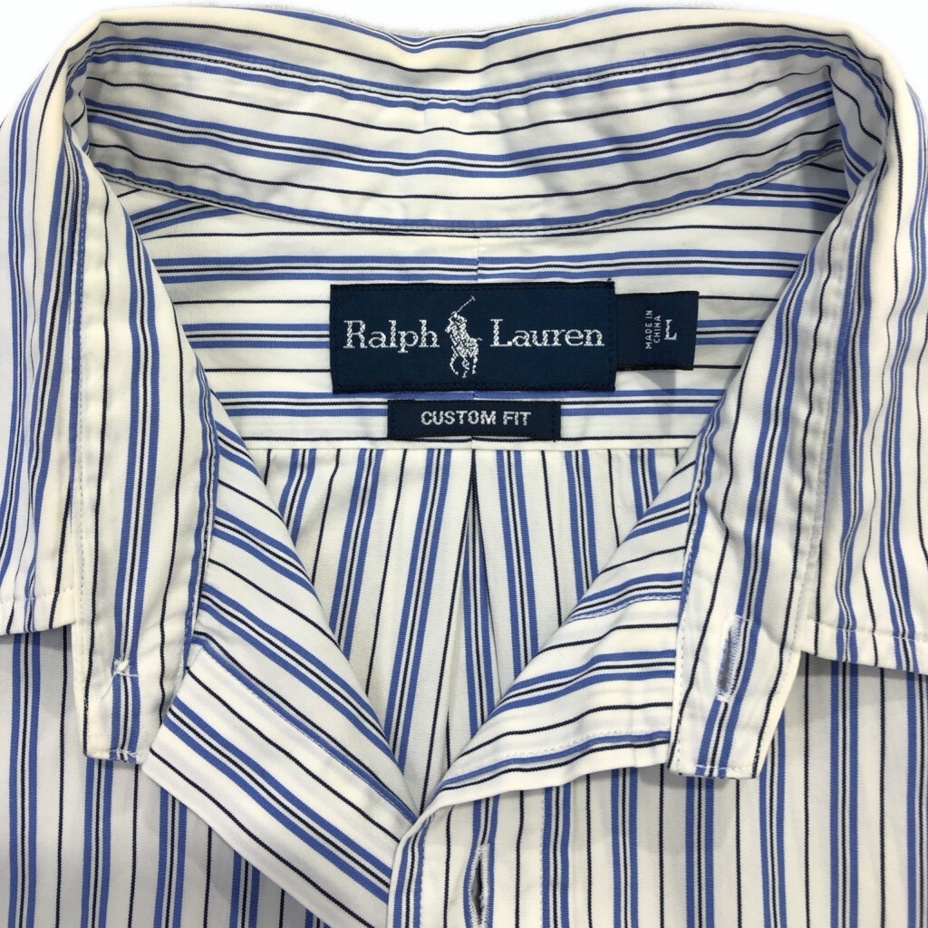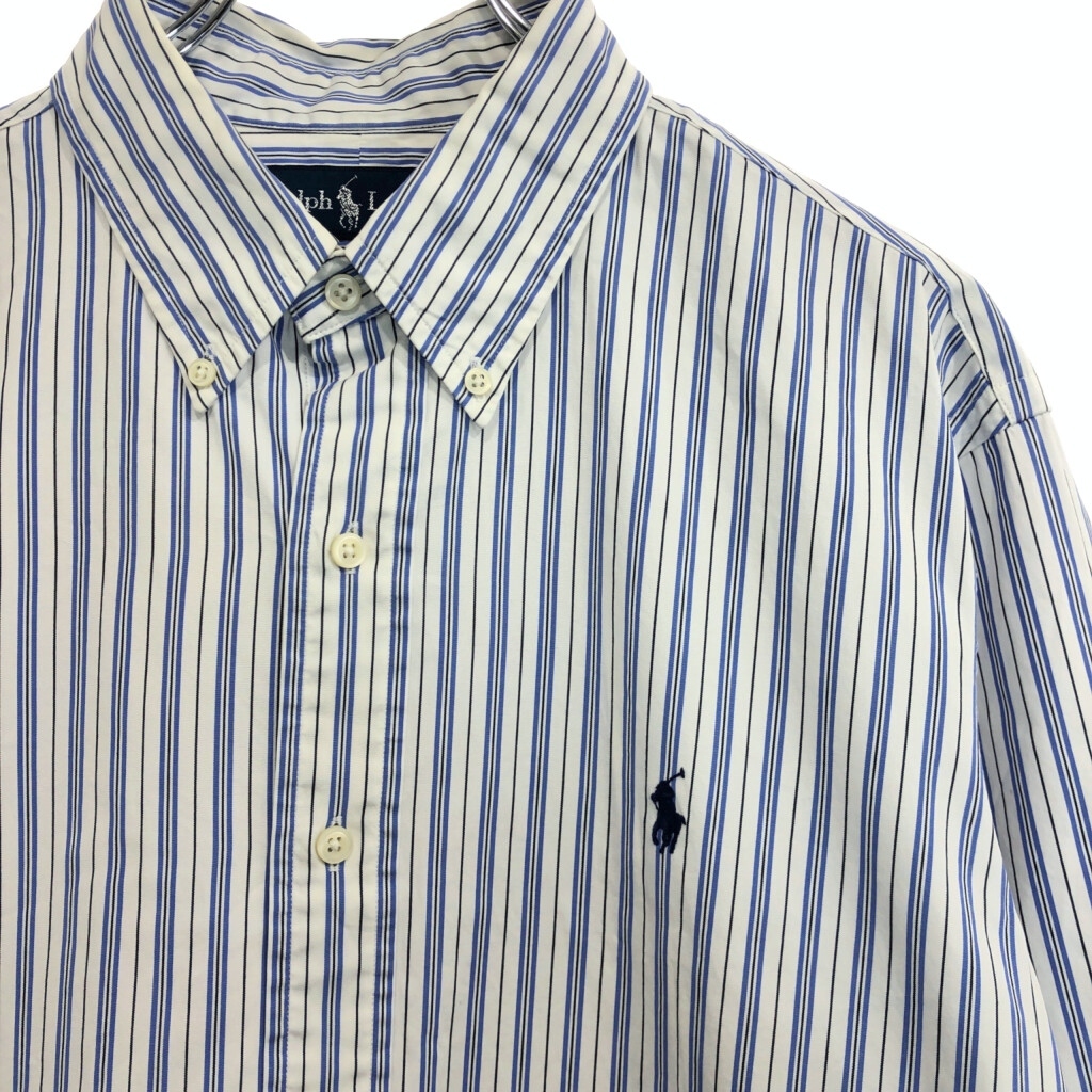 | 【商品管理番号】 U7103 【ブランド】 RALPH LAUREN/ラルフローレン 【サイズ】 L 【実寸サイズ】 肩幅:約48cm 着丈:約80cm 身幅:約60cm 袖丈:約65cm 【主な素材】 表地 : コットン 【色】 ブルー 【仕様】 ストライプ 【状態】 汚れ:襟 | |||
