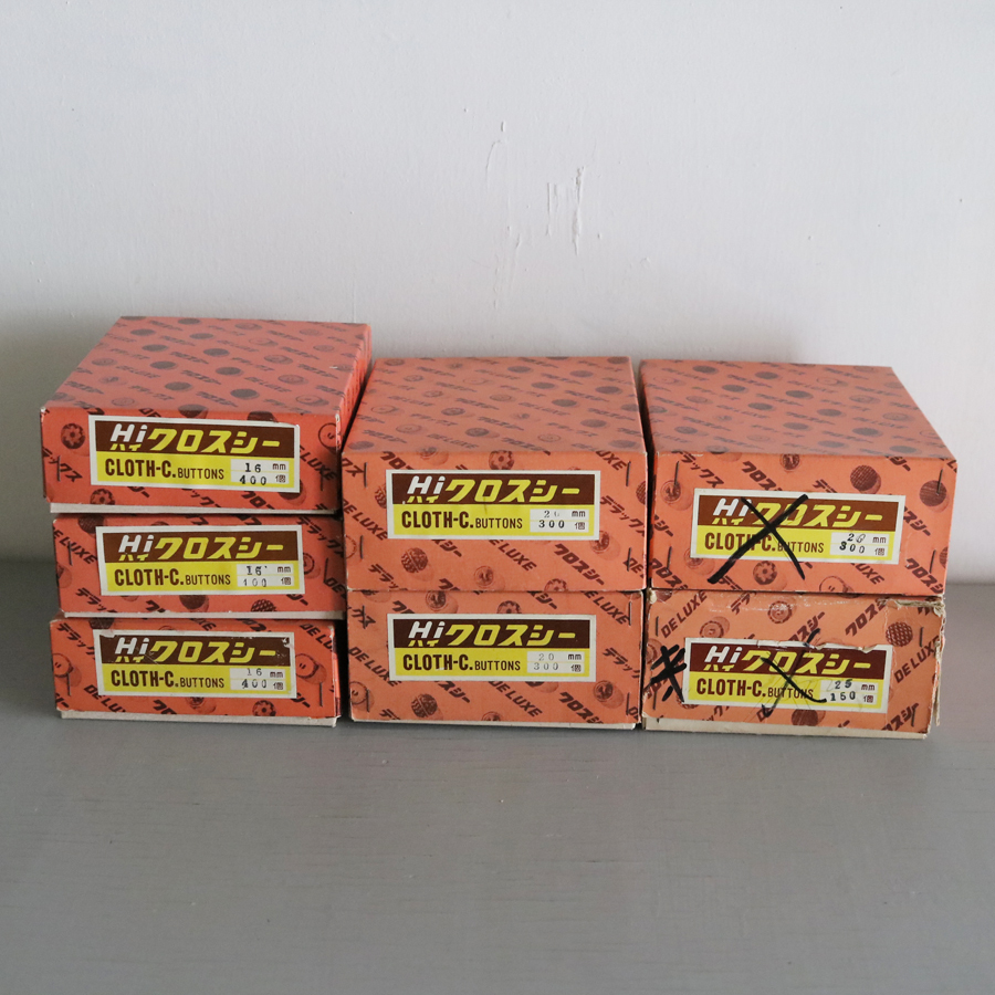 つつみボタン・くるみボタンのHiクロスシーサイズ違い7箱セットになります。