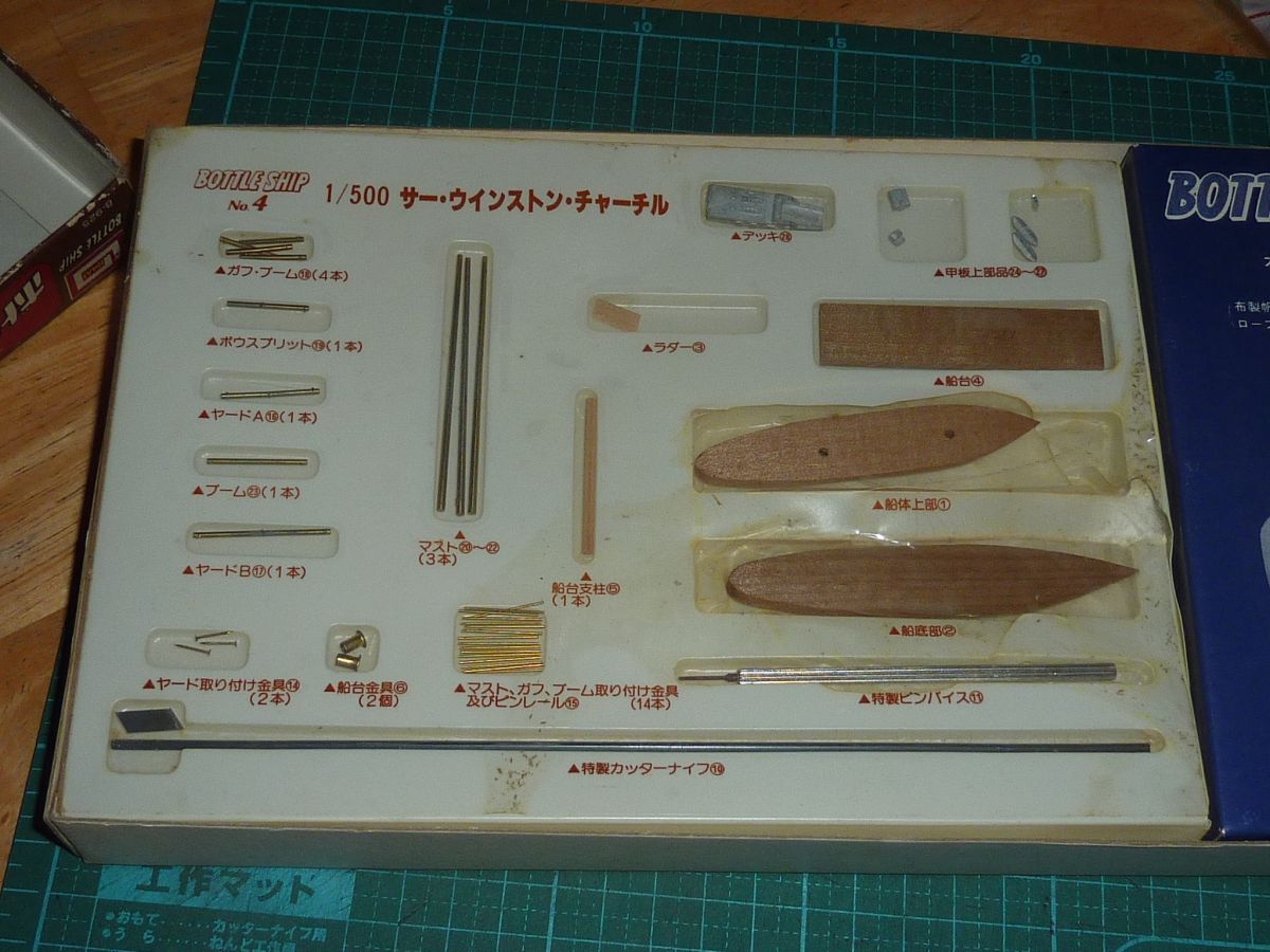 各パーツはブリスターにはいっていますが、上下船体部分とデッキのパーツ3点のブリスター部分は破られており一度パーツが