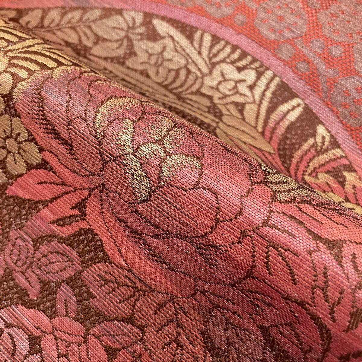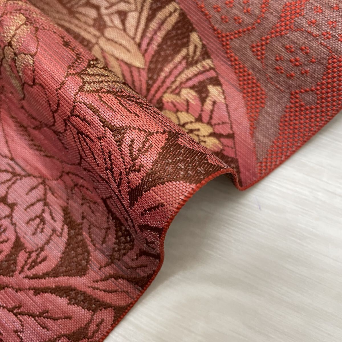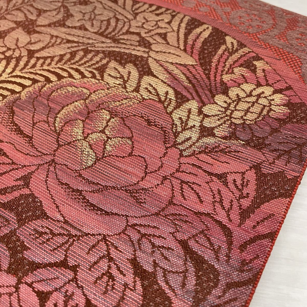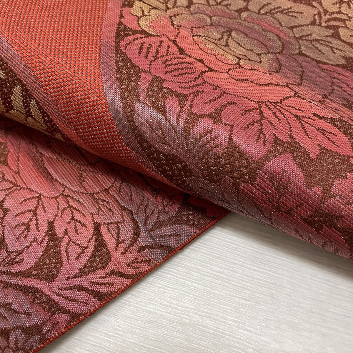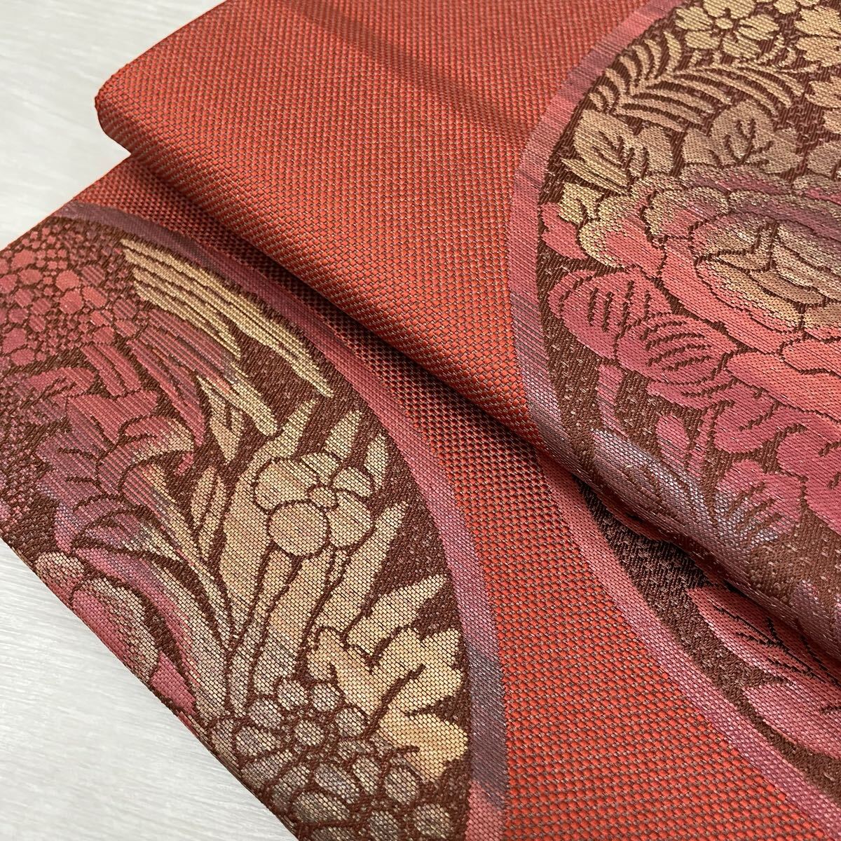 本場筑前博多織 名古屋帯 丸に美しい花模様 八寸 正絹 着物 W-6889