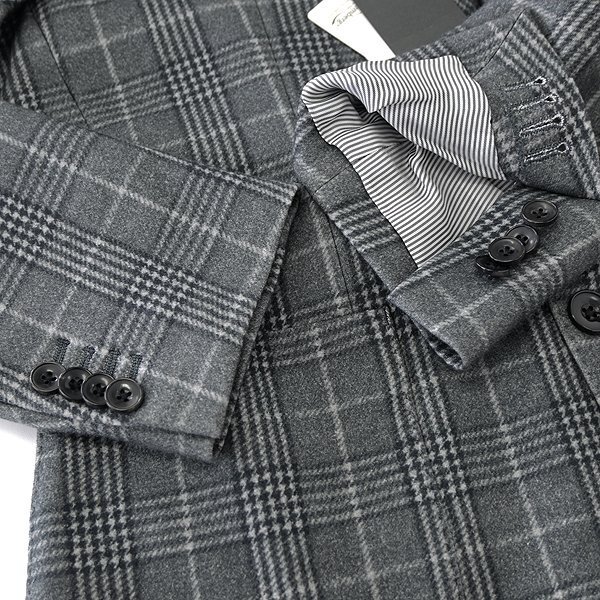 【HILTON】 1960年代にイタリアのベスティメンタ社によって手掛けられた歴史と伝統あるブランドで、ベスティメンタ社からトンボリー二社に事業を受け継ぎ今なお世界各国で愛されているブランドです。 【EUSEBIO(エウセビオ)】 イタリア最高峰のコットンニットメーカーで、世界有数の規模を誇るEUSEBIO社は、コートジボワールの自社農園で綿花を栽培し、北イタリアにある自社工場で紡績からプリントまでを一貫して行う老舗ブランド。 その高度な技術と厳選された素材は、ファッションの最前線で高く評価されています。 -------------------- イタリア【EUSEBIO】の厚手コットンジャージー素材を使用したプレミアムスーツです。 膨らみと柔らかさ、そして高い伸縮性を備えたこの生地は、織物と見紛うほど繊細なデジタルプリントが施され、深みのある色彩と品格を纏っています。 また、表面にはフランネル仕上げが施されており、ソフトで心地よい起毛感が秋冬らしい暖かみを感じさせます。 クラシックな雰囲気を漂わせながらも、現代的な快適性と機能性を兼ね備えた一着に仕上がっています。 リラクシングなシルエットに加え、肩パッドを省いたデザインとジャージー素材の採用により、驚くほどのストレッチ性を実現させています。 身体に負担をかけず、スーツでありながらカーディガンを羽織ったかのような軽やかな着心地を提供します。 パンツはベルトレスのツータックデザインでウエストにゆとりを持たせ、裾に向かって細くなるクラシカルなテーパードシルエットを採用。 現代のトレンドを捉えながらも、普遍的なエレガンスを感じさせる仕上がりです。 【ジャケット】 ・大見返し仕立て(背抜き仕様) ・フロントは2つボタン ・サイドベンツ ・袖先は4つボタン(本開き) 【スラックス】 ・2タック ・ジッパーフライ ・テーパードシルエット ・サイドアジャスター付き |