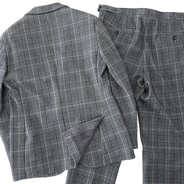 | 新品 未使用 紙タグあり A6サイズ(標準体型のLサイズ相当) 胸囲94 胴囲82 身長175 ※商品に記載されたサイズ・寸法です※ 【ジャケット】 肩幅43.5cm 身幅51cm 袖丈61cm 着丈71.5cm 【スラックス】 ウエスト85cm(内回り1周) 股上27cm 股下93.5cm 裾幅19cm 腿幅29cm(股下10cm部分) ※伸縮性が高い素材のため多少誤差が生じることがあります※ 表地:綿91% ポリエステル9% 裏地(胴裏):キュプラ100% 裏地(袖裏):キュプラ100% 下衣裏地:キュプラ100% グレー系 |