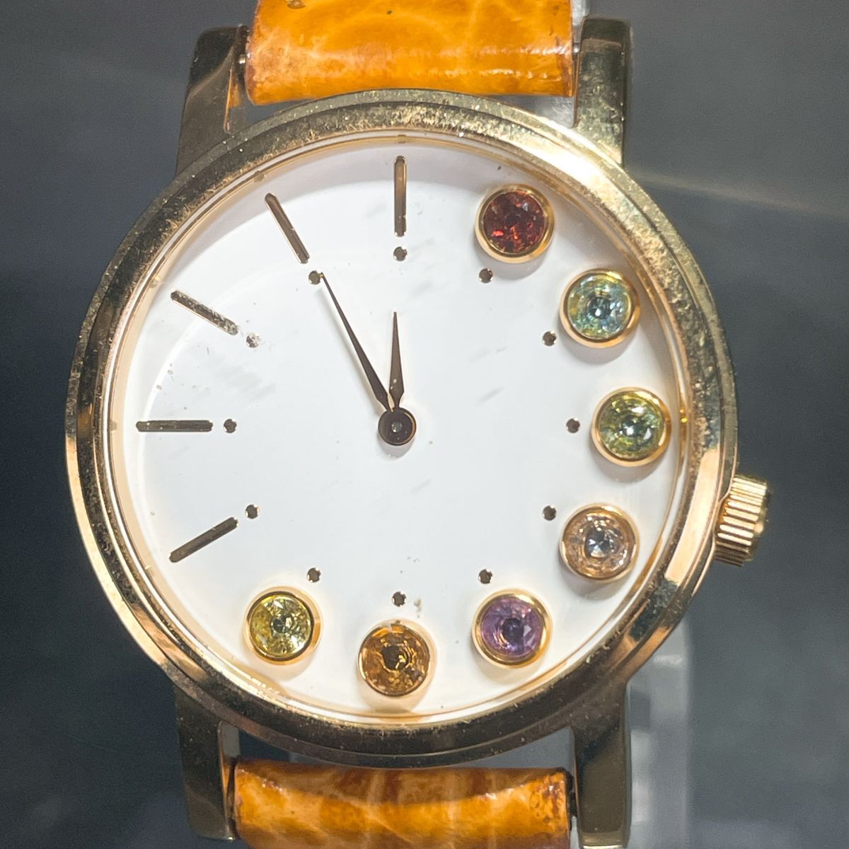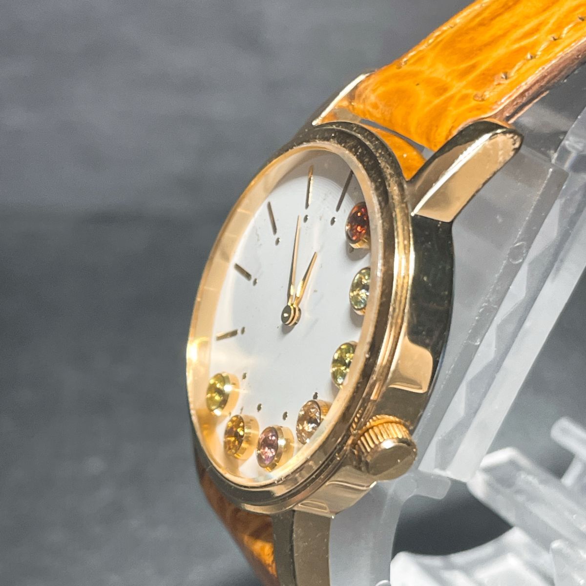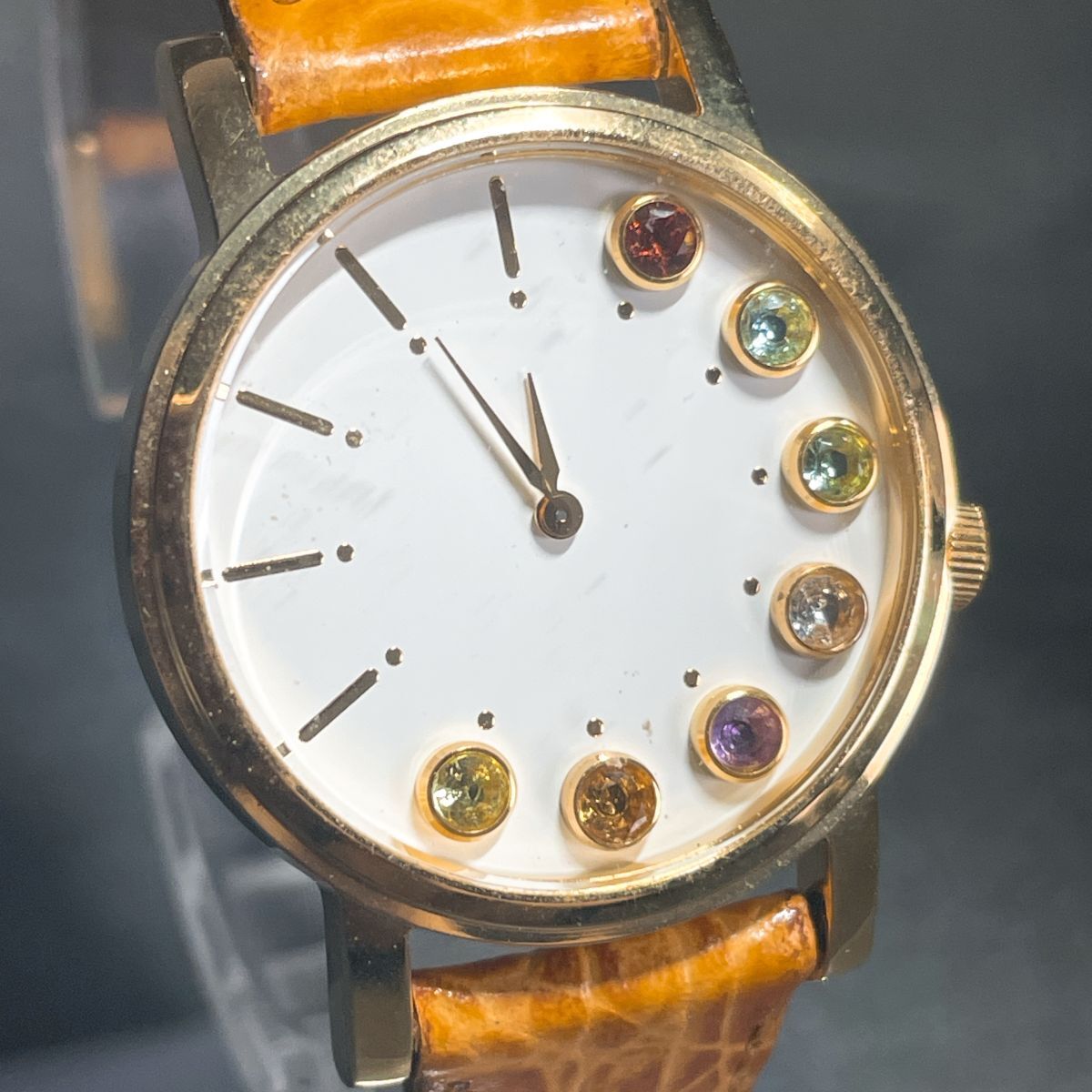 美品 腕時計 アナログ クオーツ ホワイト文字盤 ラウンド ゴールド レザーバンド ブラウン ステンレススチール 新品電池交換済 動作確認済