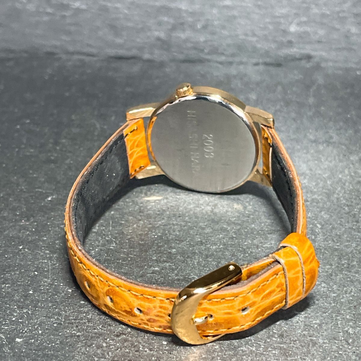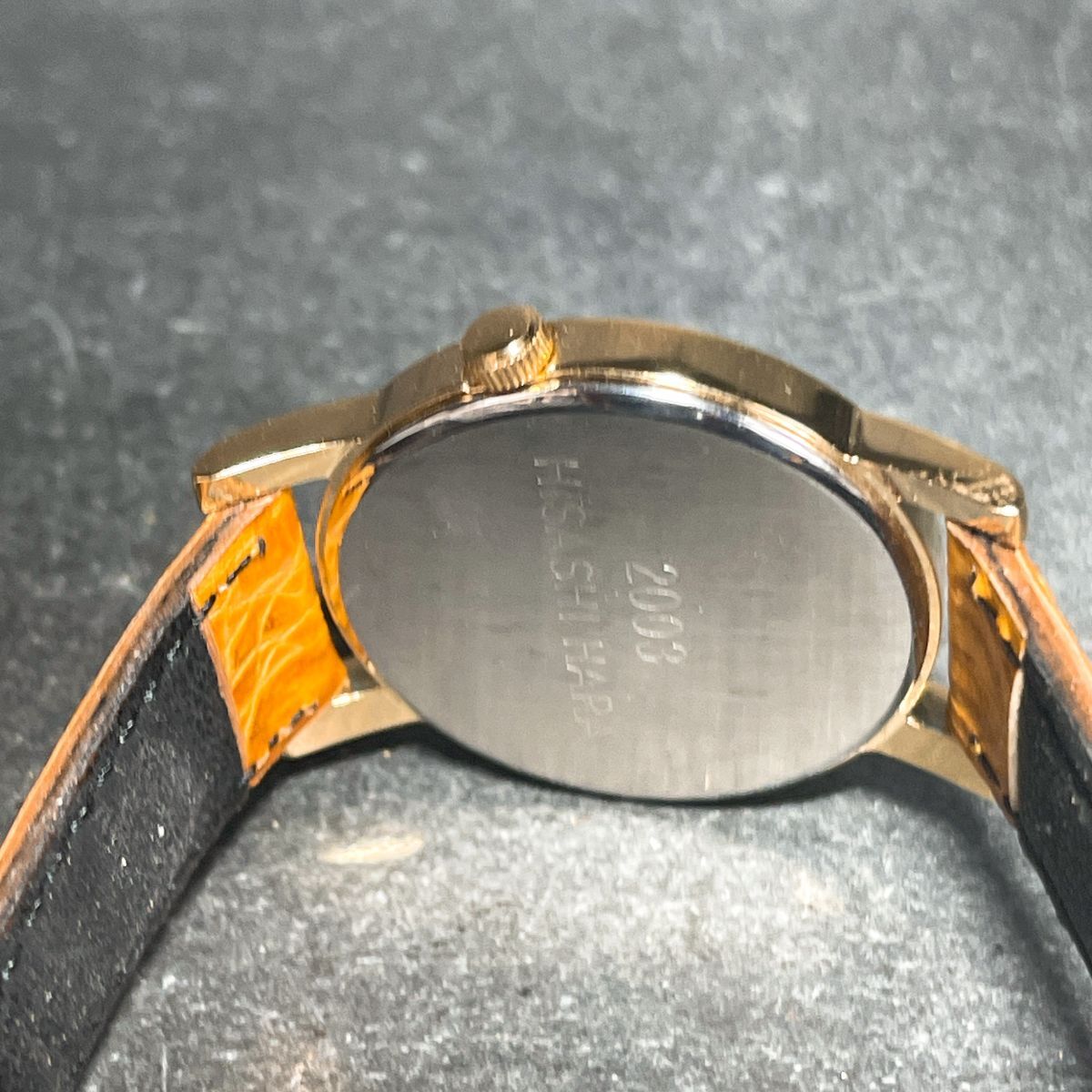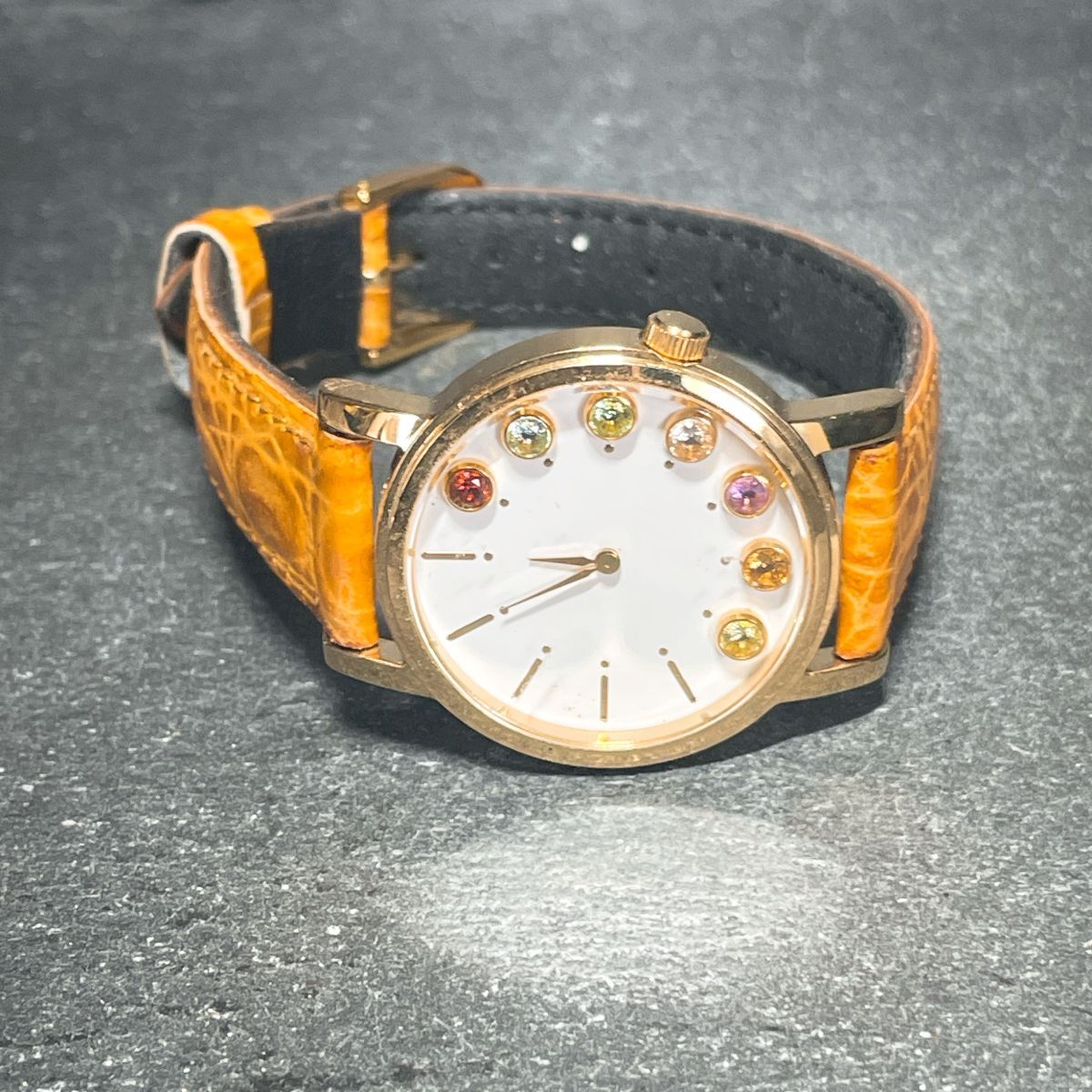 美品 腕時計 アナログ クオーツ ホワイト文字盤 ラウンド ゴールド レザーバンド ブラウン ステンレススチール 新品電池交換済 動作確認済