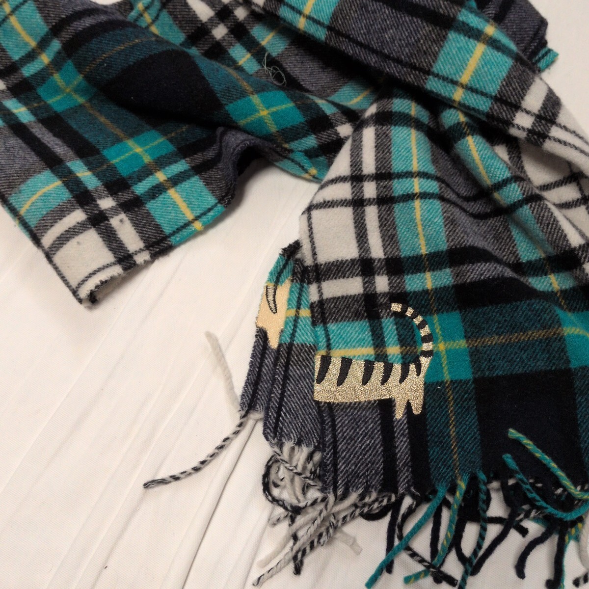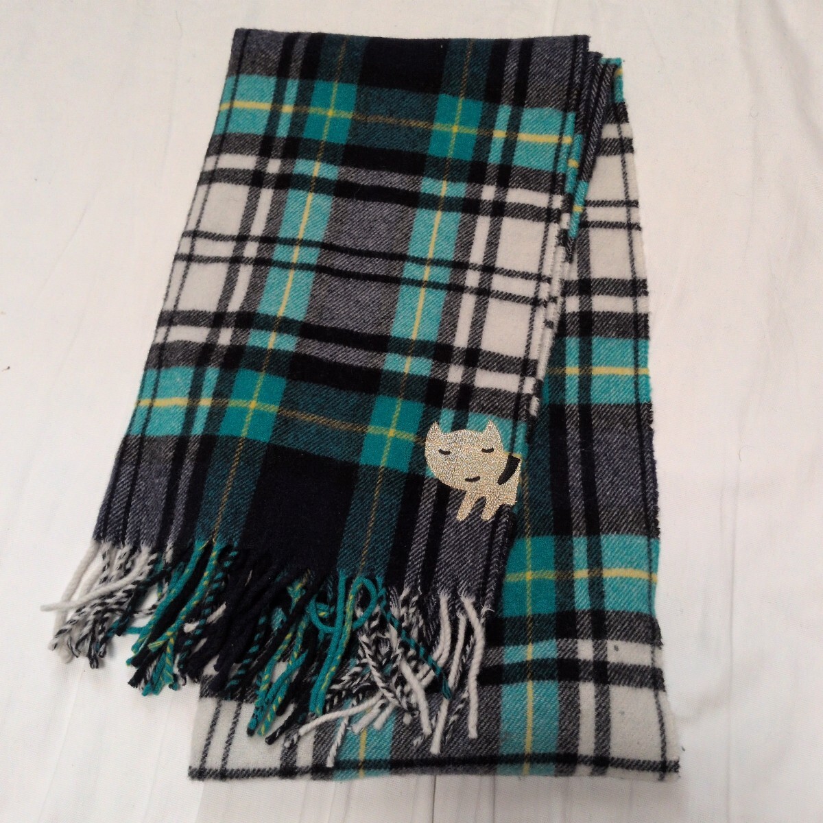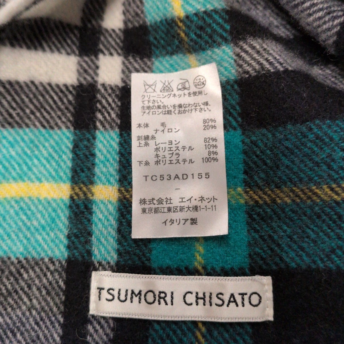 ツモリチサトの緑系チェック柄 猫 ストール マフラーです。