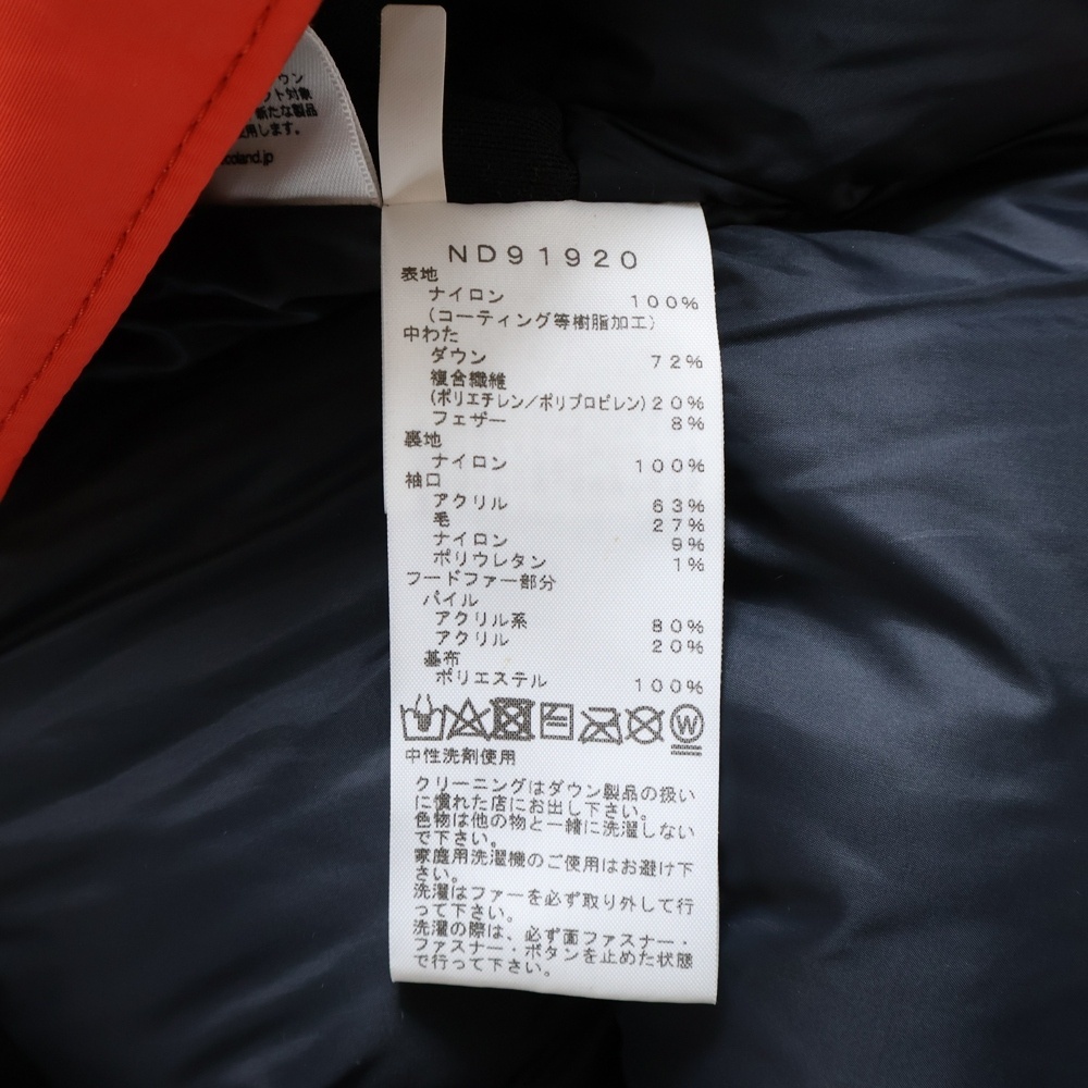 THE NORTH FACE ザノースフェイス SOUTHERN CROSS PARKA ND91920 サザンクロス パーカ ファー ダウン ジャケット オレンジ
