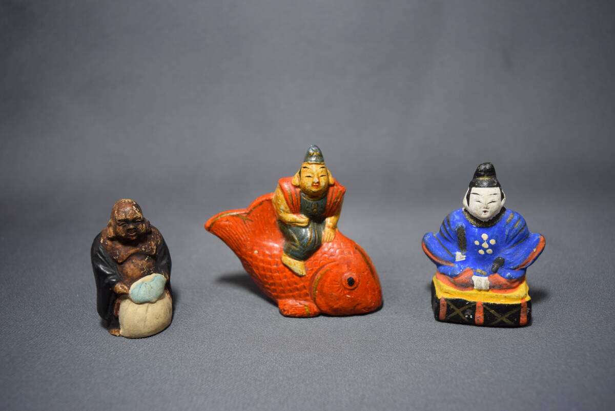 | 小形 土人形 布袋 天神人形 鯛乗り 恵比寿 土鈴 郷土玩具 福神 仏像 日本人形 和風 遊具 アンティーク ドール | ||