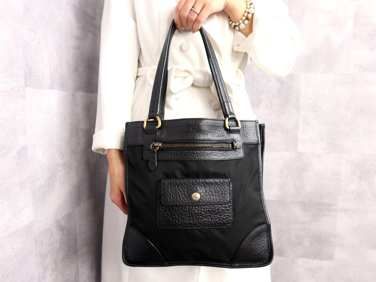 三角ロゴプレート ポコノ ナイロン カーフ レザー トート バッグ