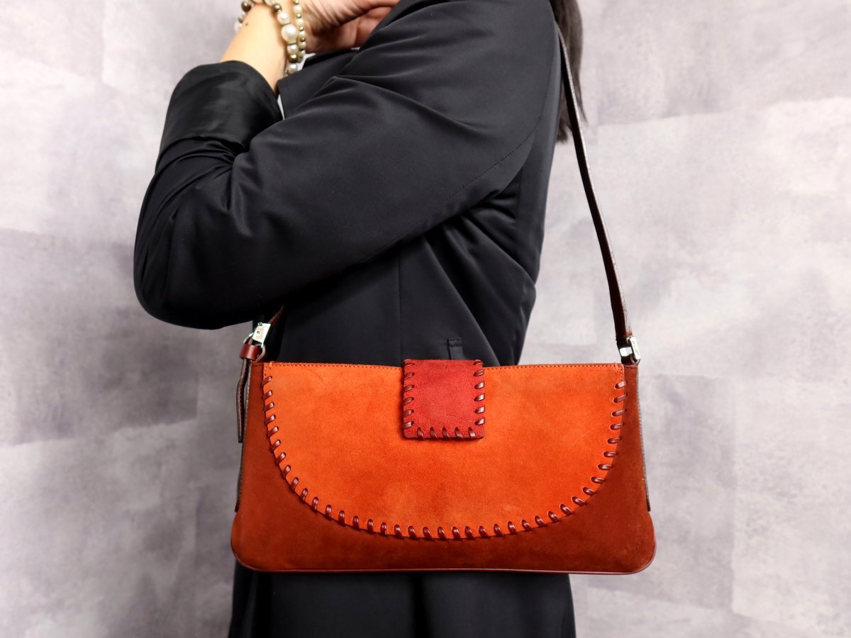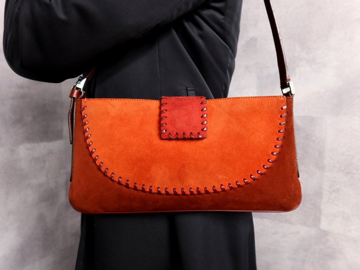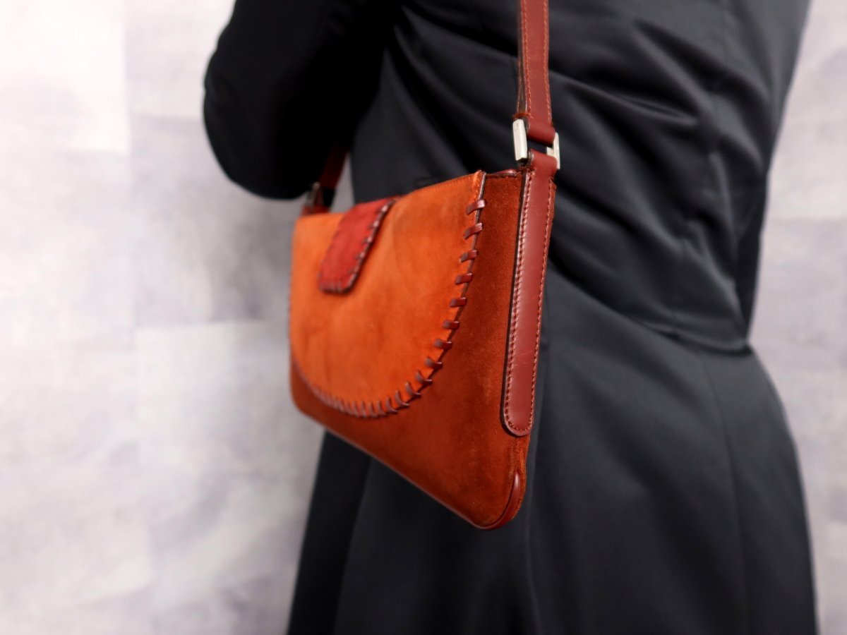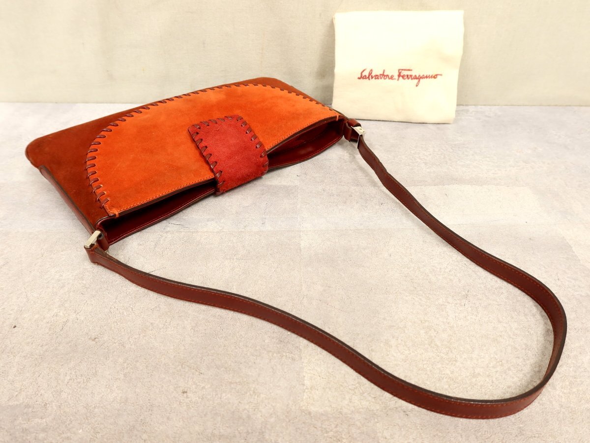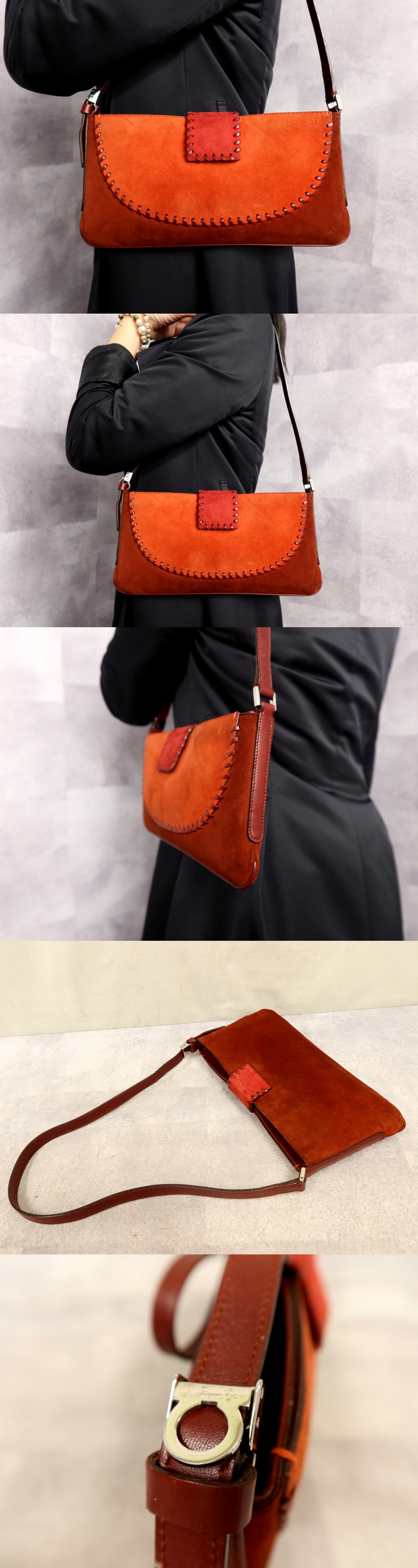 ●超美品●Salvatore Ferragamo フェラガモ●ガンチーニ●スエード レザー 本革●ショルダー バッグ●ブラウン オレンジ●SV金具●Js62474
