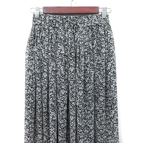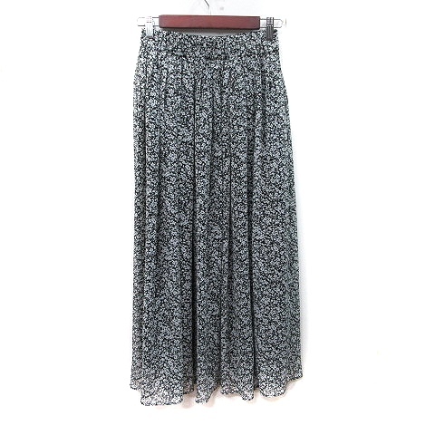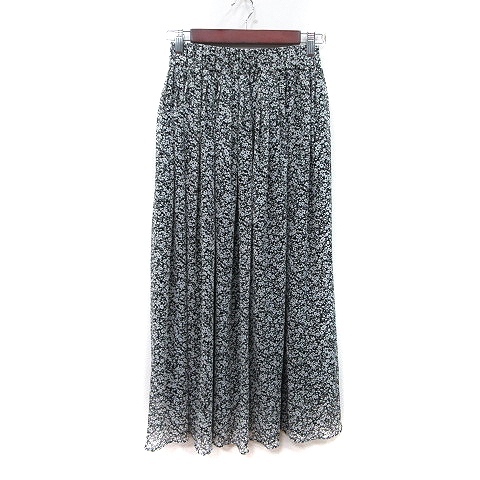 ノーリーズ Nolley's フレアスカート マキシ シフォン 総柄 36 S 黒 ブラック 白 ホワイト /YI レディース