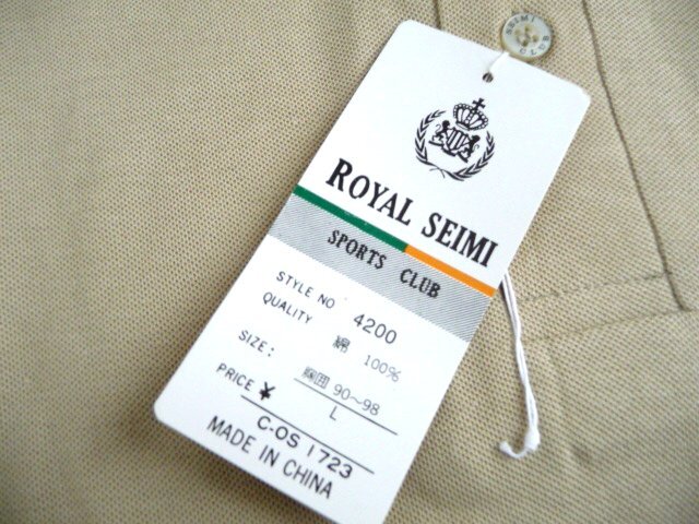 新品 ROYAL SEIMI SPORTS CLUB 長袖 ポロシャツ ベージュ L 綿 コットン 紳士 メンズ シャツ