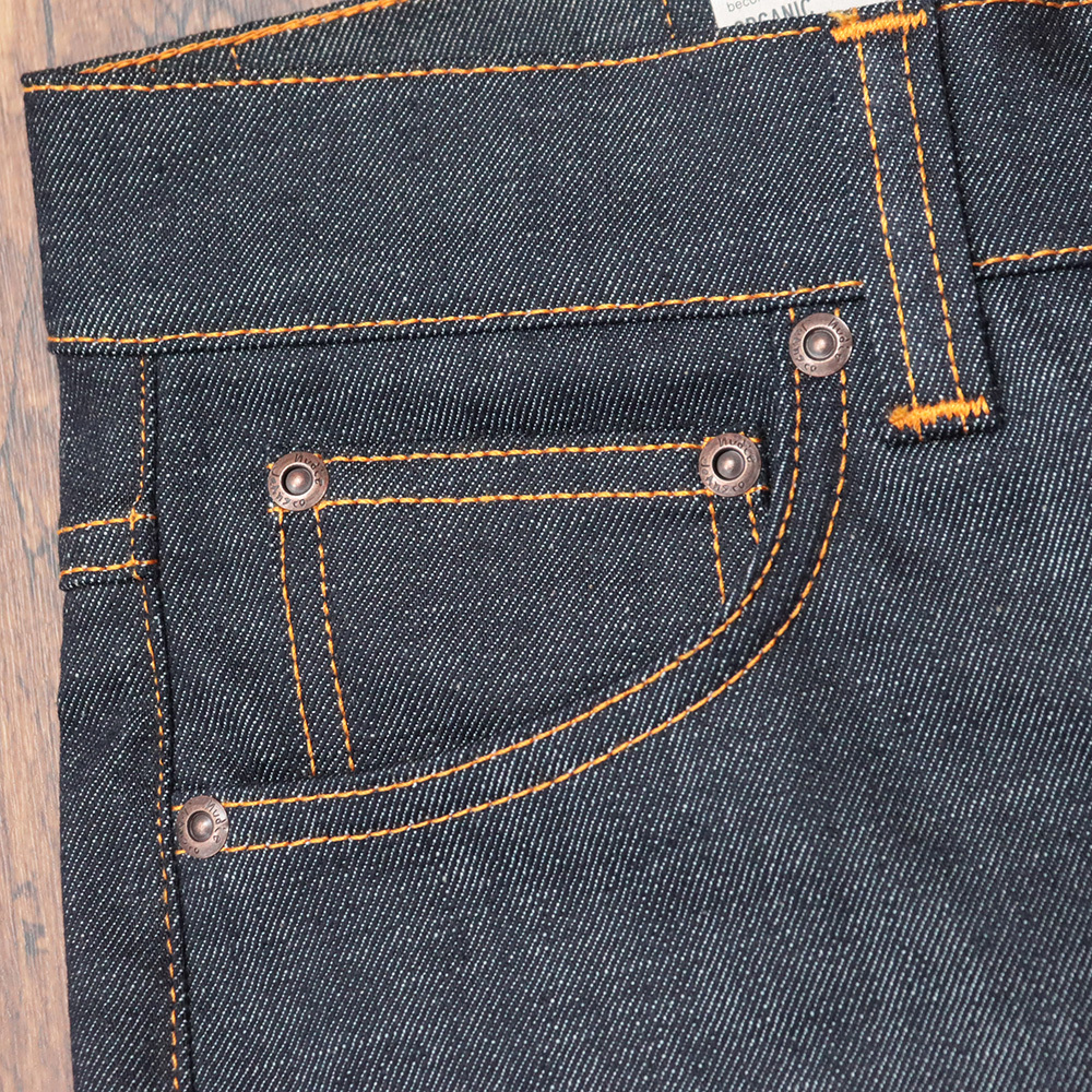 Nudie Jeansの定番スリムテーパード「LEAN DEAN」、腰まわりにやや余裕を持たせ、裾に向かって自然に絞られたスリムテーパードシルエットは、脚をすっきり長く見せ、大人の美脚ラインを演出。ドライデニム生地ならではのパリッとした風合いは、穿き込むほどに身体になじみ、経年変化を楽しめます。