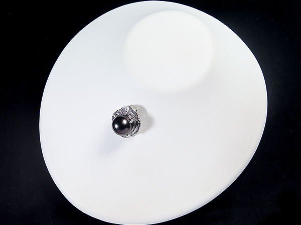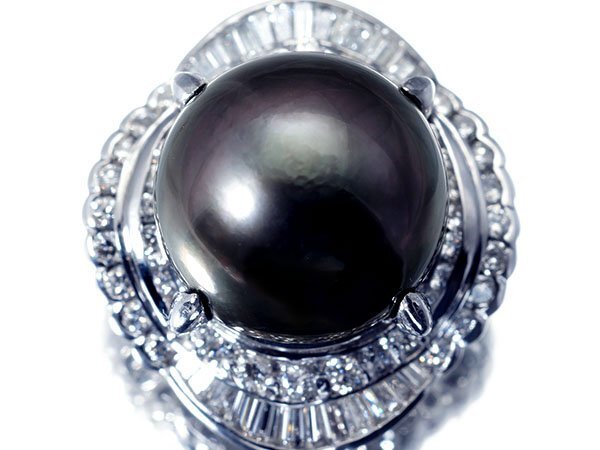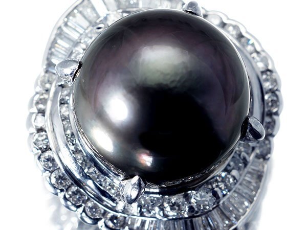 周りを取り囲む総計1.56ctもの極上ラウンド&バケットカットダイヤモンドが、煌びやかに超大粒ブラックパールを惹き立てています!