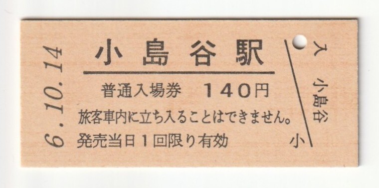 平成6年10月14日 越後線 小島谷駅 140円硬券普通入場券(日付印刷)