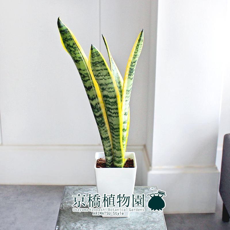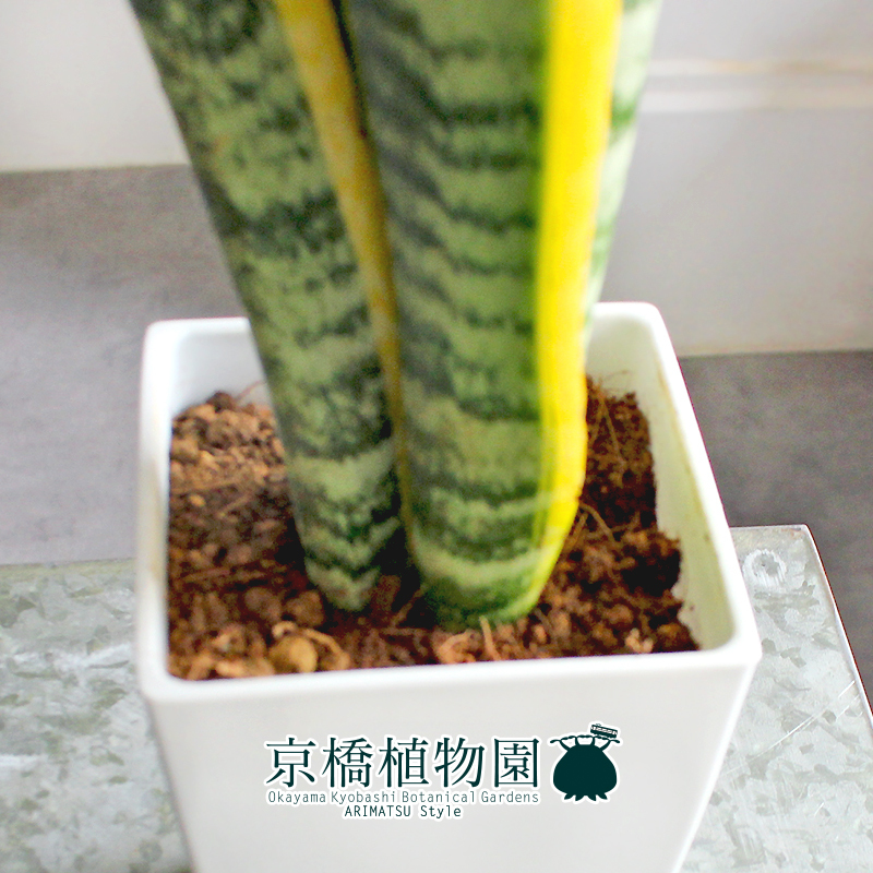 【現品】サンスベリア・ローレンチ 4号 白角鉢(7)Sansevieria trifasciata ‘Laurentii’