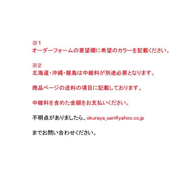▼ 商品に関するお問い合わせはこちら ■対応時間 10:00~15:00 土日祝日休業 ※商品に関するお問い合わせや初期不良等のご連絡はやり取りの履歴を残すために、 お手数ではございますが、必ず下記のメールアドレスにご連絡ください。 okuraya_san_ys@yahoo.co.jp ▼ 営業日・支払い方法・発送・返品・交換・保証に関して ※必ずお読みください 営業日・支払い方法・お届けについて・返品・交換・保証に関する件は、以下のページにて詳しく記載しております。 営業日掲載ページはこちら 営業日カレンダー掲載ページ 支払い方法・お届けについて・返品・交換・保証に関する掲載ページはこちら お買い物ガイド詳細ページ プライバシーポリシーに関する掲載ページはこちら プライバシーポリシー記載ページ ▼ 質問が多かった即決落札について 即決で落札する方法 即決で落札するには ├PC版の場合は、商品画像右の「今すぐ落札する」をクリックします。 └スマホ版の場合は、(1)「入札する」をタップします→(2)最高入札額記入欄に、即決の金額(税抜)をご記入頂ければ即決できます。 入札→即決落札した場合の履歴に関して ご入札頂いているYahoo_IDで即決価格で再度ご落札して頂ければ、前の入札の履歴は残りますが前の分はキャンセルとなり、即決価格のみでのご落札となります。重複しませんのでご安心ください。 ▼ オークションに関して 入札後の各種確認メールについて 当店からの受注確認メール・入金確認メール・発送確認メールが「迷惑メールフォルダ」に自動で振り分ける場合がございます。 「フォルダを空にする」前にメールが届いているか一度ご確認ください。 ご落札の際は、以下3つの当店メールアドレスが届くように受信設定をお願いいたします。 okuraya_san_ys@yahoo.co.jp okuraya_san@yahoo.co.jp 当店からの各種確認メールは、オーダーフォームに登録のメールアドレス宛に送信されます。 取引方法 手渡しでの直接取引には対応できません。物流業務を委託していますので、 お近くにお住まいの方でも商品のお受け取りに来ていただくことはできません。 在庫について 当社では、卸販売など各方面でも商品を同時販売しております。 在庫情報は随時更新(新規出品の停止、個数少数での出品、出品取り消しなど)させて頂いておりますが、ご落札頂いた際に時間差などで売り切れになる場合もございます。 予めご了承ください。 商品の価格について 当サイトでは、正確な価格表示に努めておりますが、万が一表示価格やご注文商品の金額に誤りがあった場合、 誤表記を理由にご注文を取り消させていただくことがございます。 取り消しに際し、お客様にはメールにて販売価格をお知らせしご注文を継続されるか否かのご確認をさせていただきます。 なお、これによりお客様にご不便やご迷惑をおかけした場合でも、 直接的または間接的な損害についての補償は致しかねますことを、何卒ご理解のほどお願い申し上げます。 キャンセル お客様都合でのキャンセルはお受けできません。 やむを得ぬ事情により商品発送後にキャンセルをされる場合には、 キャンセル料として返送時に発生した実経費(送料)をお客様側にご負担いただきますので予めご了承ください。 落札後3日以内にご連絡が取り合えないお客様についてはやむを得ずキャンセル処理をさせていただく場合もあります。 交換返品返金について お客様都合での、交換・返品・返金は一切対応できません。 評価について 著しく評価の悪い方の入札はご遠慮願います。 領収書発行について 商品代引きご利用の場合は、伝票が領収書となりますので、別途領収書の発行はできません。 領収書発行希望のお客様は入札後、オーダーフォーム要望欄に必ず「領収書発行希望」をご記入の上ご連絡ください。 |