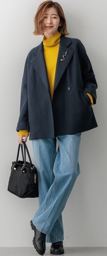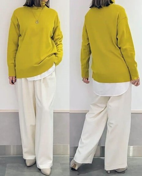 色はマスタードで、落ち着いたトーンが秋冬におしゃれに映えるイエロー系です。