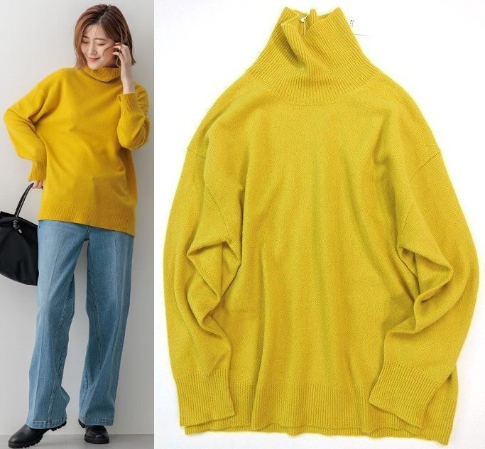■23区大きいサイズ44ピュアカシミヤタートルネックニット/マスタード30,800円■