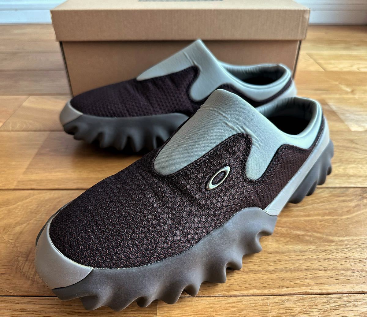 話題のコラボレーションスニーカー、OAKLEY × BRAIN-DEAD JACQUARD CHOP SAW MULE Maroon/Espressoの出品です。
