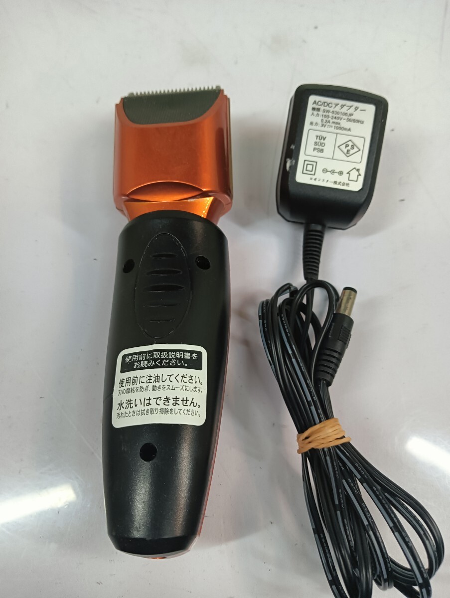 ・仕様の要点:ご家庭用バリカン。ACアダプタによる電源供給。